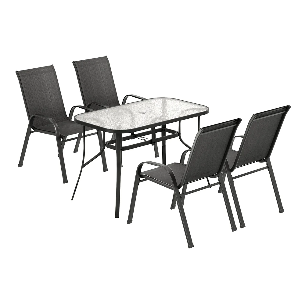 Elevate your outdoor living with the Gardeon 5 Piece Mesh Dining Set—perfect for sunny gatherings in fresh air! The rust-proof powder-coated steel frame ensures lasting durability, while the all-weather synthetic fabric resists sun, rain, and stains, keeping colors vibrant for years. The spacious tempered glass table features a convenient parasol hole for shade, and the stackable chairs maximize storage space. Floor protectors safeguard your surfaces while providing stability on uneven ground. With its sleek, versatile design, this set transitions seamlessly from patio to indoor dining. Low-maintenance and built for comfort, the Gardeon dining set is ideal for relaxing meals with family and friends under the open sky!