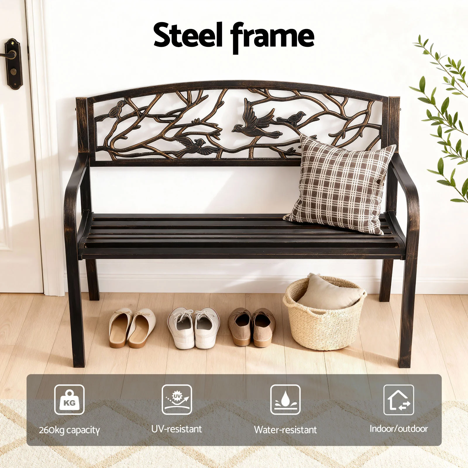 Upgrade your outdoor or entryway space with the Gardeon Outdoor Bench! This stylish and durable bench features a sturdy steel frame with a powder-coated finish for rust resistance, paired with a comfortable slatted design. Perfect for patios, gardens, porches, or hallways, it offers a cozy seating solution with a weight capacity of 260kg. Easy to assemble and maintain, its compact size fits seamlessly in small spaces. Whether used for relaxing, putting on shoes, or adding a decorative touch, this bench combines functionality and aesthetic appeal. Enjoy long-lasting comfort and support with Gardeon's reliable craftsmanship!