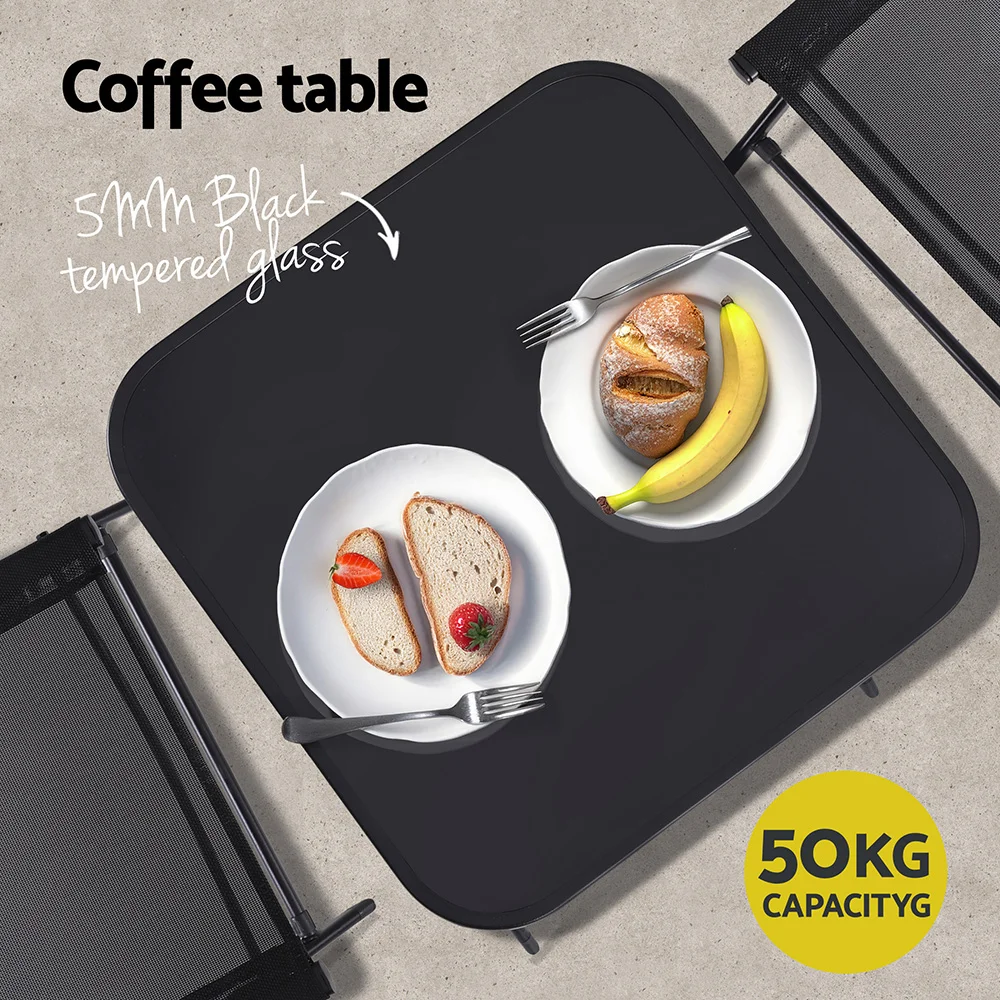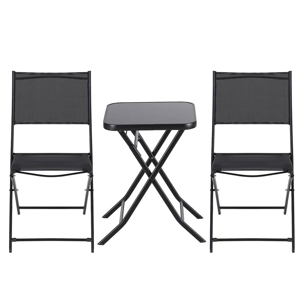 Upgrade your outdoor relaxation with Gardeon foldable 3-piece patio set, designed for portability and style. The lightweight chairs and square side table fold flat for easy storage and transport, perfect for small spaces or on-the-go use. Made with durable, breathable mesh fabric, the chairs keep you cool and dry, while the powder-coated steel frames resist rust and weathering. The modern table offers a handy spot for drinks or snacks. Ideal for decks, patios, or picnics��durable, compact, and effortlessly chic.