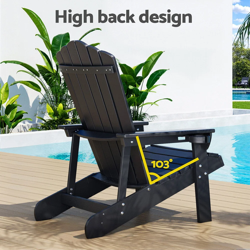 Relax in comfort with this Gardeon Adirondack chair, featuring a 103�� reclined backrest and wide armrests for full-body support. Made of weather-resistant HDPE material, it resists fading, cracking, and moisture��no staining or waterproofing needed. The 11cm cup holder keeps drinks handy, while 304 stainless steel screws prevent rust. Supports 170kg with a reinforced triangular frame for stability. Perfect for patios, poolsides, or beaches, it's easy to clean (just soap + water) and paintable for customization. Quick assembly included.