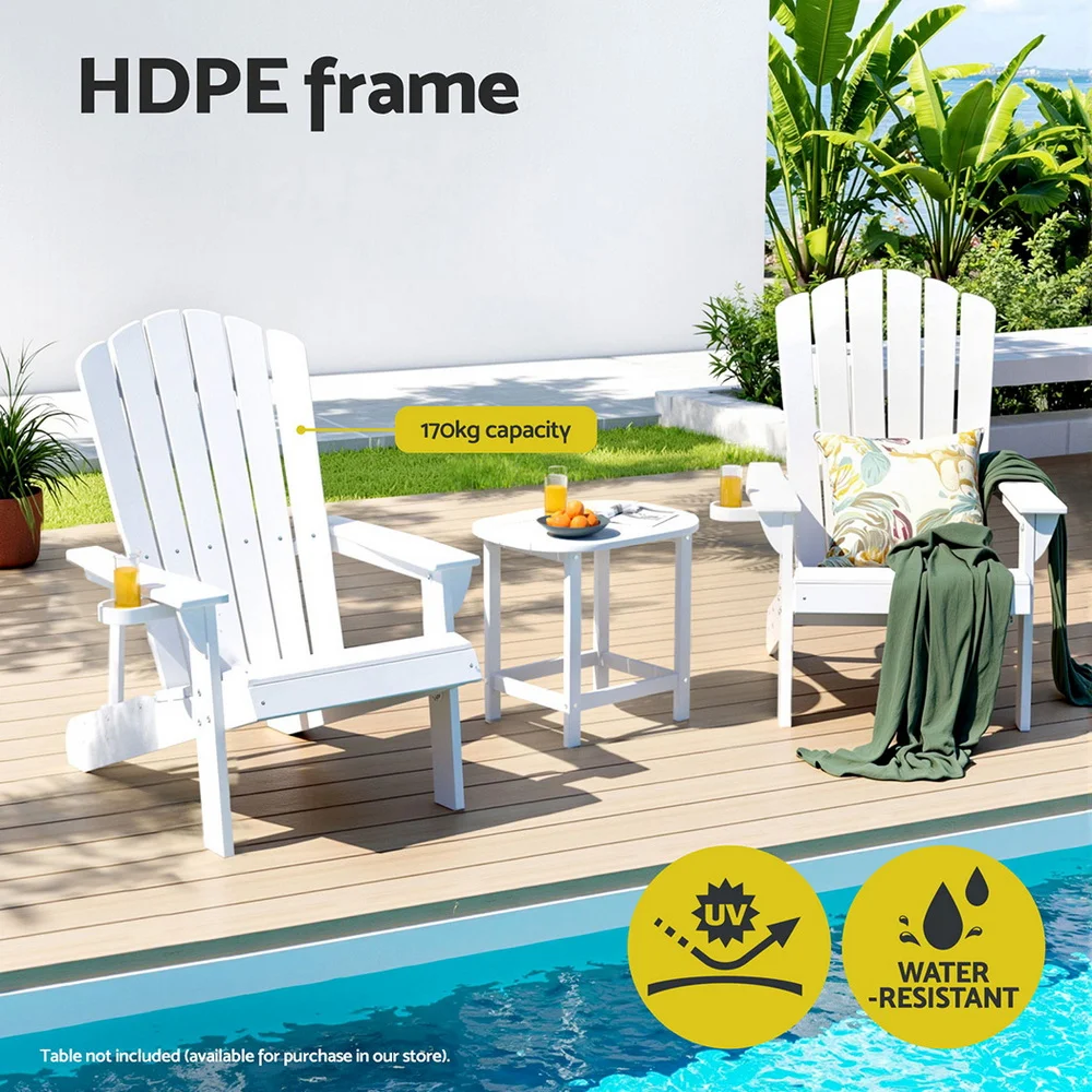 Relax in comfort with this Gardeon Adirondack chair, featuring a 103�� reclined backrest and wide armrests for full-body support. Made of weather-resistant HDPE material, it resists fading, cracking, and moisture��no staining or waterproofing needed. The 11cm cup holder keeps drinks handy, while 304 stainless steel screws prevent rust. Supports 170kg with a reinforced triangular frame for stability. Perfect for patios, poolsides, or beaches, it's easy to clean (just soap + water) and paintable for customization. Quick assembly included.