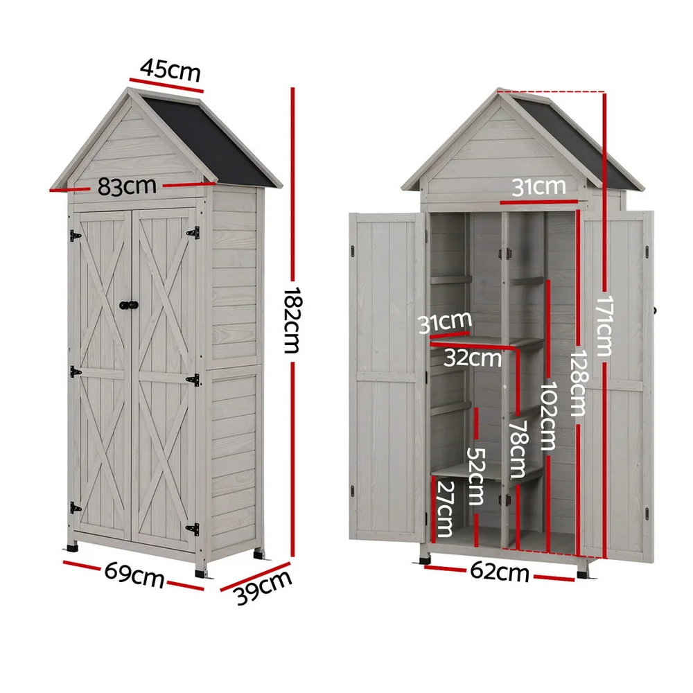 Organize with Gardeon's Spacious Outdoor Storage Cabinet -featuring 3 shelves and ample storage for all your tools & gear. Built to last, this weatherproof outdoor cupboard combines solid fir wood and a durable PVC roof for all-season protection. The 2cm thick wood resists cracks and corrosion, ensuring long-lasting use. Easy assembly with numbered parts, full hardware, and a clear guide. Versatile as a garden cupboard, balcony storage, or outdoor cabinet, all with a sleek wood finish.
