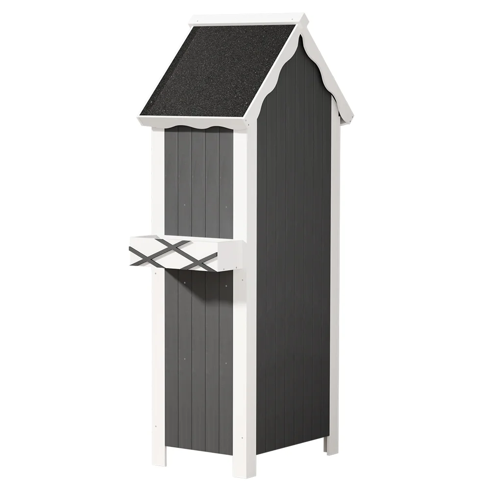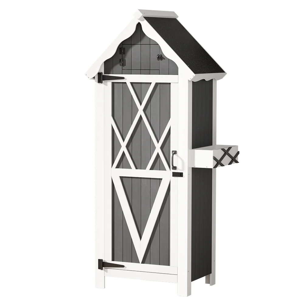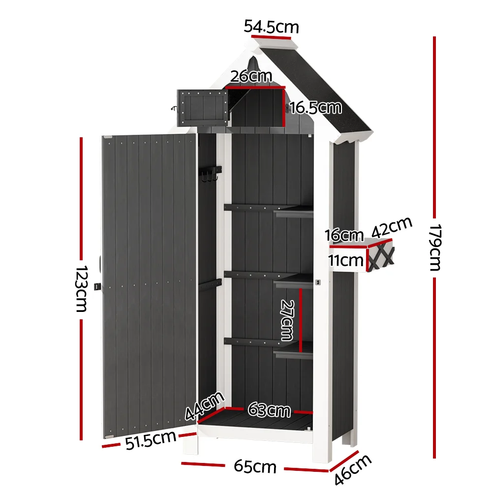 For stylish and practical outdoor furniture that can withstand any weather, look no further than the Gardeon Wooden Storage Shed. The gorgeous cottage shed design is perfect for gardeners in need of generous storage space. The cabinet is made from solid Fir wood and features 3 tiers of shelving, 3 convenient hangers and a cute cuckoo-style upper compartment for all your gardening needs. Its weather-resistant structure and water-resistant asphalt roof will keep it standing through any kind of weather. The magnetic latched door will keep all your goods safe and sound away from the elements and backyard fauna. Use indoors or outdoors for unique rustic appeal. Easy to assemble and even easier to use, you'll love the convenience and style of the Gardeon Wooden Storage Shed.