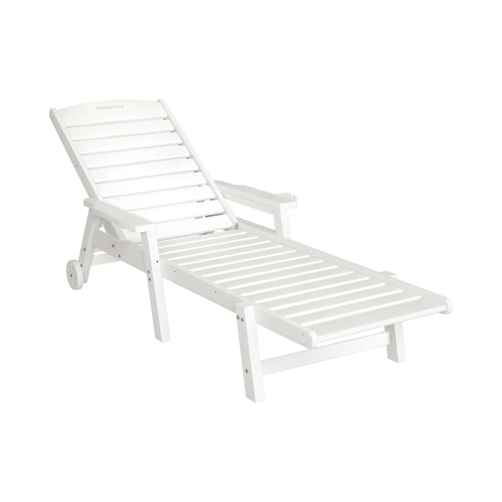 Upgrade your relaxation with the Gardeon 4-position adjustable chaise lounge! Featuring a versatile reclining backrest, this lounge chair adapts perfectly to sunbathing, reading, or napping. Its sturdy frame supports up to 150kg, while the rolling wheels and handles allow for effortless repositioning. Crafted from weatherproof wood-grain HDPE and 304 stainless steel, it resists sun, rain, and wind without fading. The chair includes a convenient cup holder and is designed for quick setup—so you can start enjoying it immediately with minimal effort. Ideal for poolside, patio, or beach relaxation.