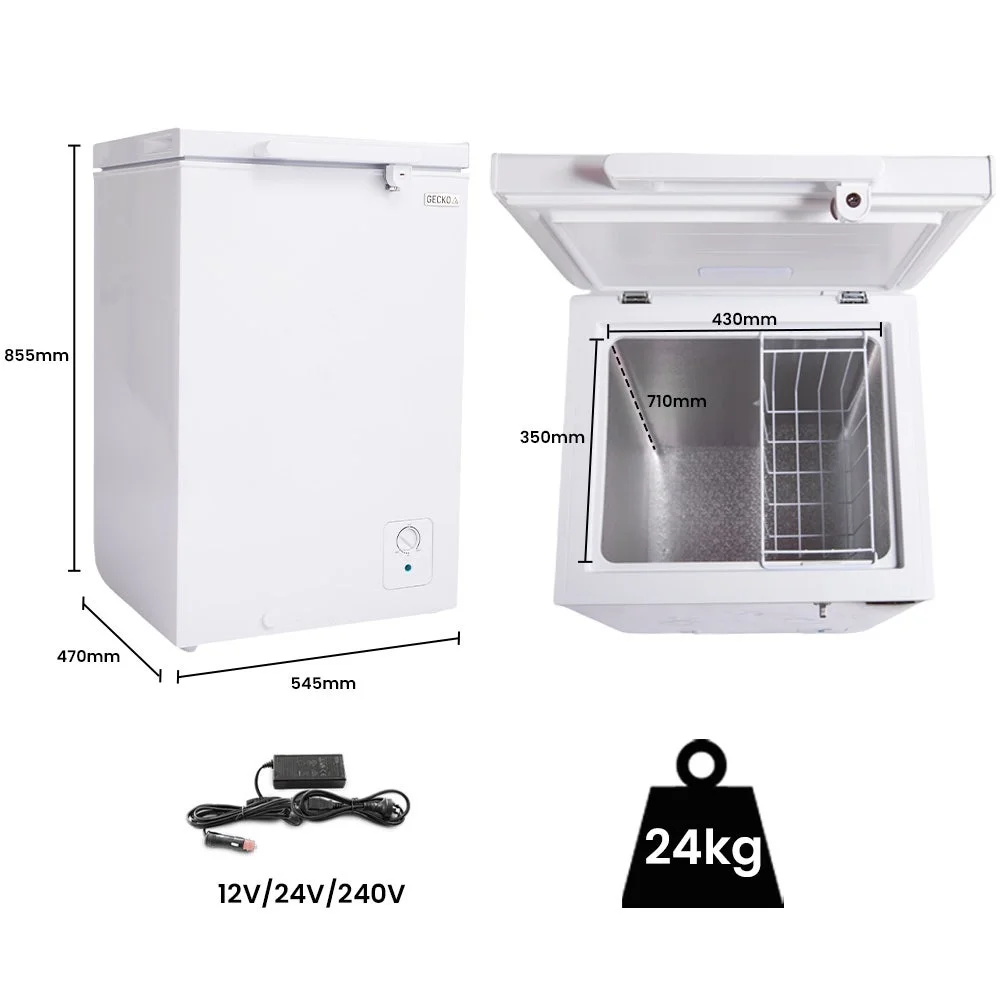 The Gecko 100L Portable Chest Freezer is designed to keep your frozen food fresh and secure, whether you're on a long road trip, embarking on a marine adventure, or living off-grid in a cabin or tiny home.
