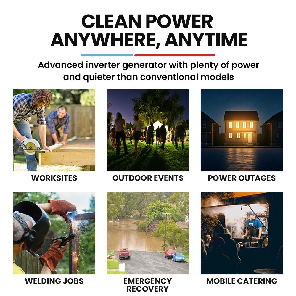 The GenPower GP6500ie Inverter Generator is built for those who refuse to compromise on power, efficiency, or convenience. Whether you are running a caravan air conditioner, keeping your campsite alive, powering tools on the jobsite, or safeguarding your home during an outage, the GP6500ie delivers dependable performance with ease.