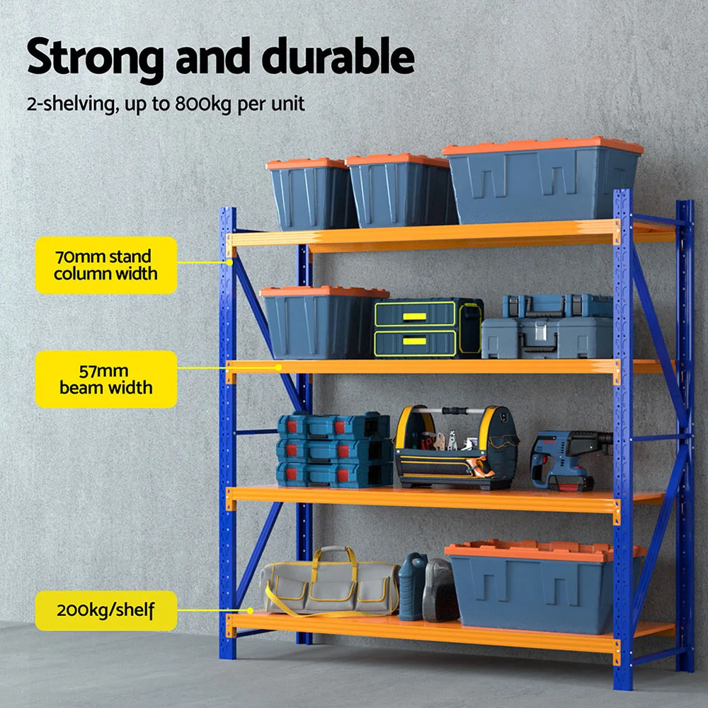 The Giantz Warehouse Rack is designed for heavy-duty storage with 200kg capacity per shelf. Crafted from industrial-strength steel, this rack is built to withstand the tough conditions while providing a reliable storage solution. The reinforced frame, combined with Z-bracing, adds extra stability and strength, ensuring that even the heaviest items are securely stored. With adjustable shelf heights, you can customise the rack to suit your specific storage needs, whether it's tools, equipment, or other large items.