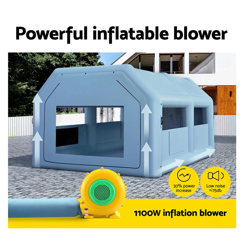 For all your large paint jobs, look no further than the Inflatable Paint Booth from Giantz. Made with high-quality 201D oxford cloth and 0.4mm PVC material that is water, dust and UV-resistant, this booth is durable and built to last. The 3-layer filtration system ensures that your workspace stays clean and free of harmful particles, while the 1100W electric inflation blower provides both inflation for the structure and ample airflow for optimal painting conditions. Featuring a large front door and a convenient zippered back door, this booth is easy to access and maneuver. The two filtration windows and four bright transparent windows allow for maximum visibility and lighting, with a lamp-hanging ring for added convenience. The deflation port makes short work of packing down the structure. The portable handle makes it easy to transport, and the included carry bag ensures that you can take it with you wherever you go. Whether you're a professional painter or a DIY enthusiast, the Giantz Inflatable Paint Booth is the perfect addition to your workspace.