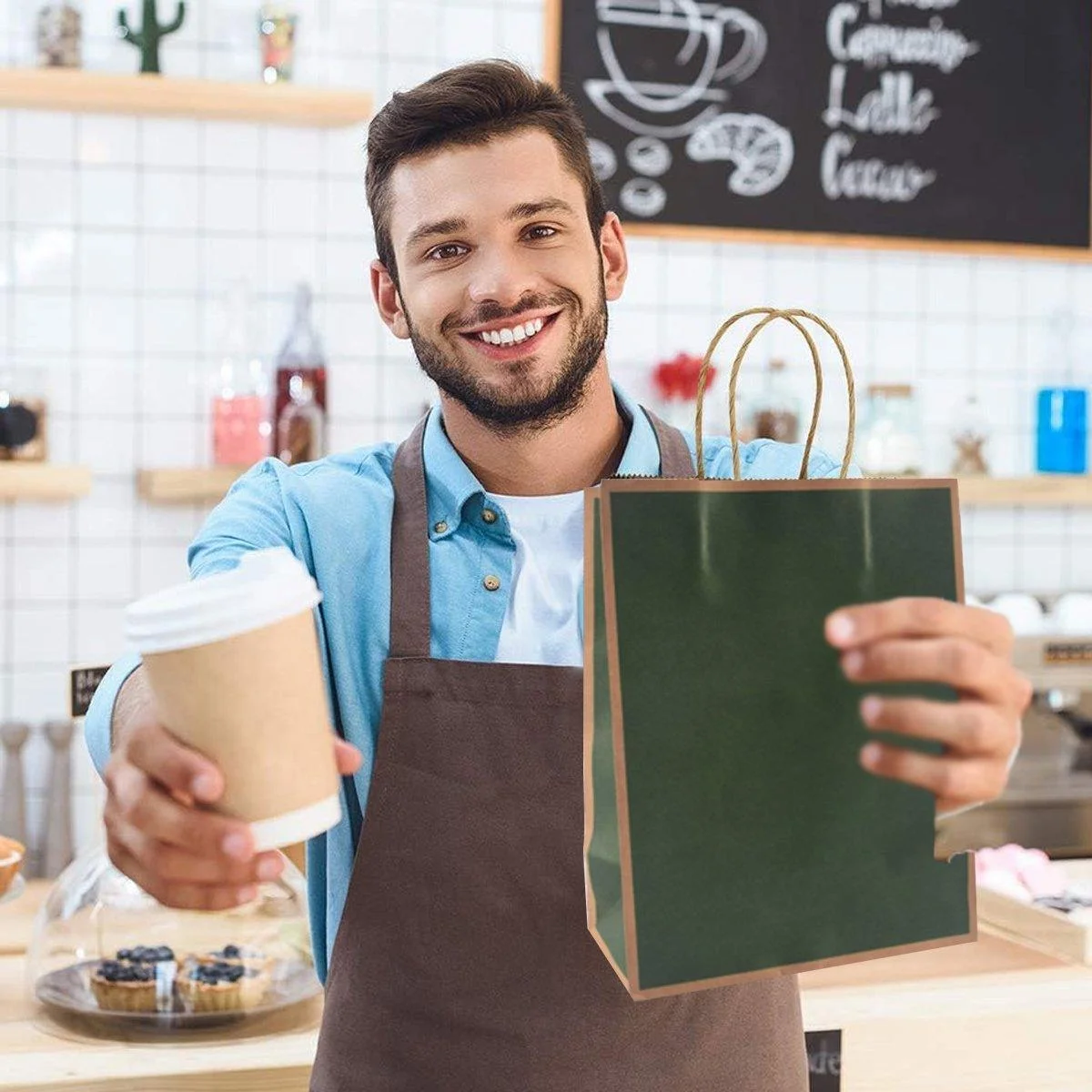 Introducing our versatile Kraft Paper Bags, perfect for any occasion. This set includes 50 pieces of high-quality kraft paper bags, available in 4 different sizes and 6 vibrant colours. Whether you're packaging gifts, clothing, baked goods, or takeaways like milk tea and coffee, these bags are designed to meet your needs. Durable and sturdy, they ensure your items are well-protected and easy to carry.