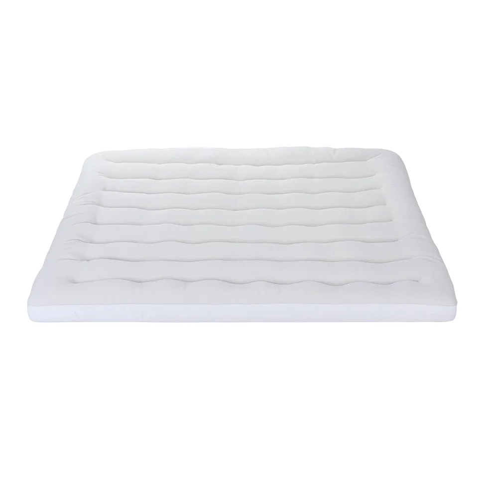Enhance your sleep with Giselle Bedding's 5cm pillowtop topper featuring innovative double-sided design. The cooling fabric side wicks moisture while the coral fleece provides plush warmth.1000GSM hollow fiber filling and 3D wave quilting create balanced support that fits mattresses up to 45cm deep. This highly breathable topper reduces heat buildup and comes vacuum-packed for hygiene. Machine washable for effortless maintenance.