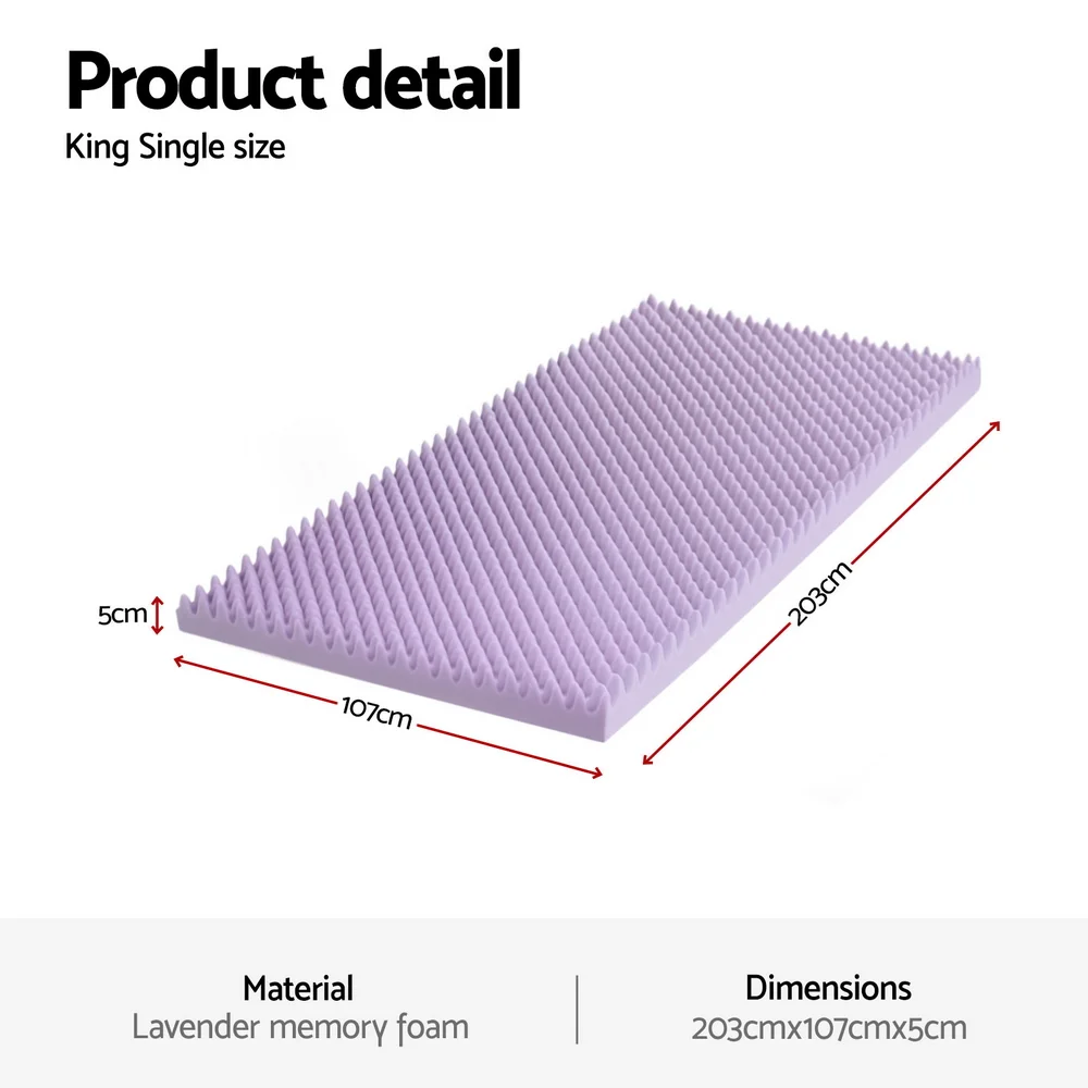 Experience deeper, more restful sleep with this 5cm Lavender-Infused Memory Foam Mattress Topper. Designed with a breathable egg crate structure, it enhances airflow while gently conforming to your body. The calming lavender scent promotes relaxation, making it perfect for unwinding after a long day. With over 1000 support points, the topper evenly distributes body weight and helps relieve pressure from key areas such as the shoulders and hips. Motion isolation ensures undisturbed rest, even if you share the bed. Ideal for hot sleepers, this topper offers cool, breathable comfort all night long.