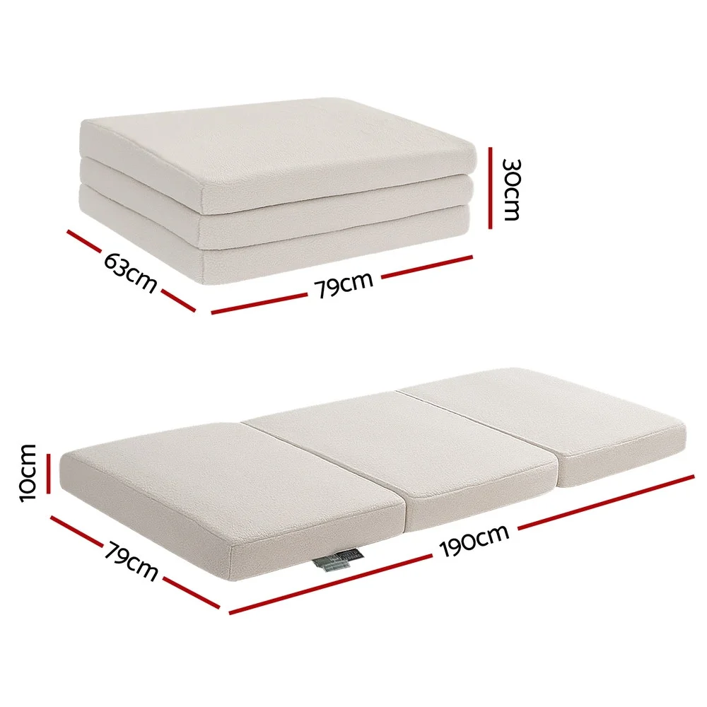 Relax or rest with this 3-fold foam mattress by Giselle Bedding. It converts easily into a chair or bed, featuring soft sherpa fleece, high-density foam and a washable zippered cover. With anti-slip base and compact fold design, it's perfect for guests or travel.