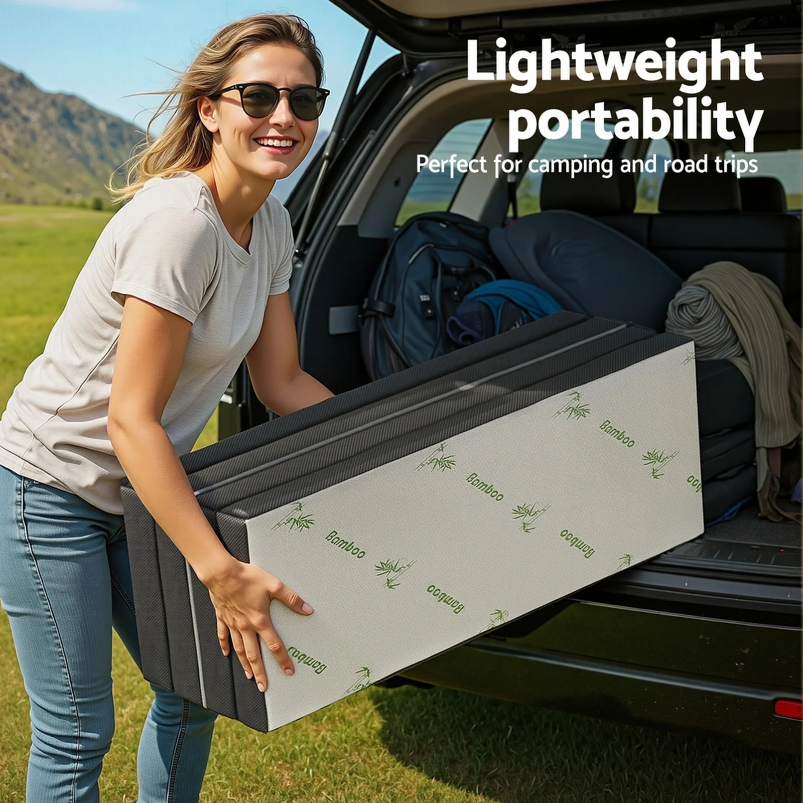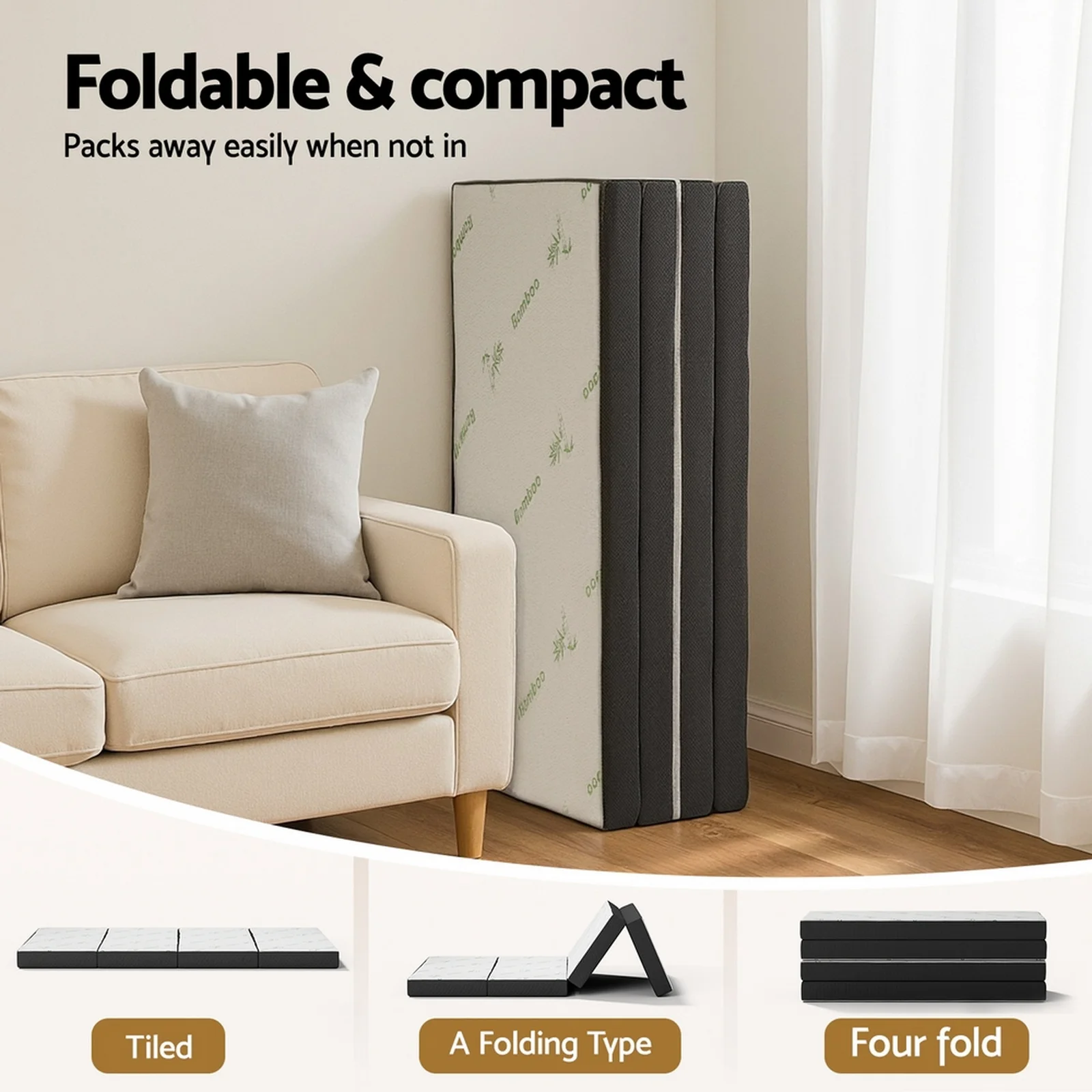 Our Giselle Bedding Folding Foam Mattress is a wonderful solution for soothing rest. Its cover with bamboo fabric top and air mesh fabric sides and bottom feels absolutely heavenly while the high-density foam provides adequate support for your body. The mattress is foldable, so it can easily be folded for storage and instantly opened into a queen bed for sleepovers, temporary bedding, or a soft surface for relaxing. Fold the mattress against the wall to transform it into a double-sized sofa to suit all your leisure needs. The cover is removable and washable for total hygiene. Ideal for both adults and kids, the Giselle Bedding Folding Foam Mattress is a wonderfully versatile bedding solution for any home.