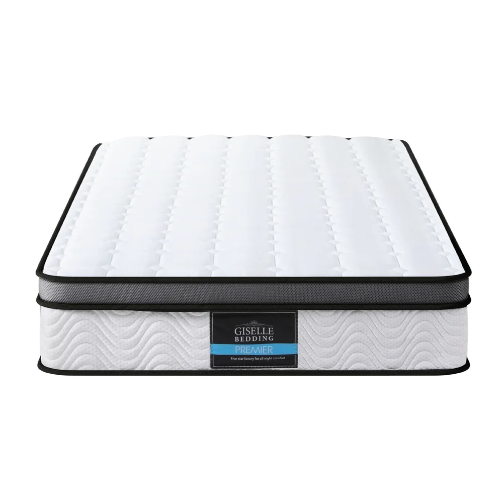 Indulge in luxury and comfort with the Giselle Bedding Sorrento Series Mattress. Boasting a generous 25cm thickness and a medium-firm feel, this mattress is crafted for both support and relaxation. Its Bonnell spring core features an enhanced 6-turn coil system, ensuring durability and stability for years to come. The inclusion of cool gel-infused memory foam and high-density foam provides cooling comfort and plush support, while the soft quilting top layer adds an extra layer of softness. Hypoallergenic and resistant to dust mites and mould, it promotes a healthier sleep environment. Experience superior support, even weight distribution, excellent ventilation, and a restful night's sleep with the Giselle Bedding Sorrento Series Mattress.