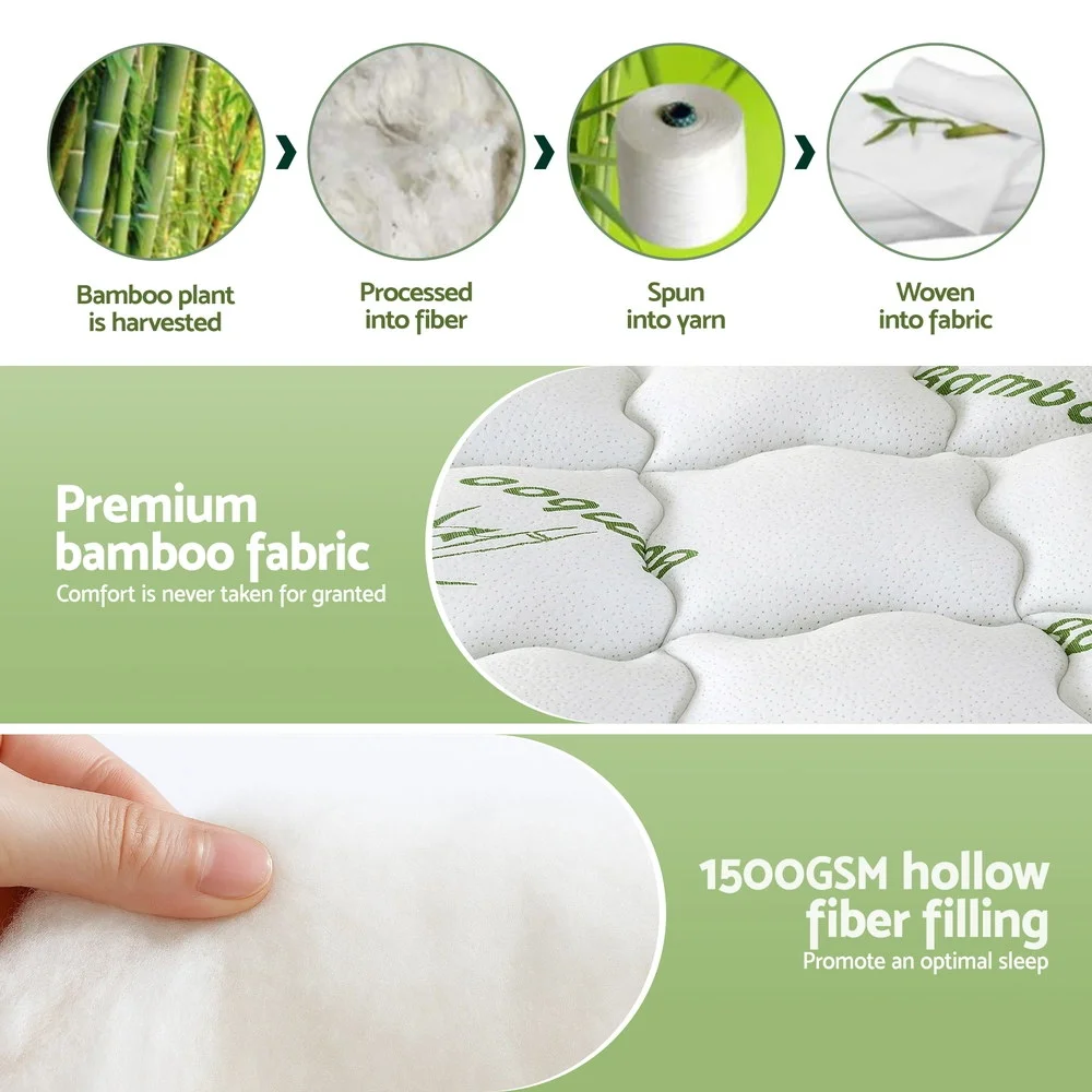 Elevate your sleep with the Giselle Bedding Pillowtop Topper, featuring an 11cm plush profile of 1500GSM hollow fiber beneath premium bamboo fabric. The 3D wave-check quilting enhances airflow while distributing weight evenly across your mattress. Designed for deep mattresses up to 45cm, this highly breathable topper arrives vacuum-packed for hygiene and is machine-washable for effortless maintenance.