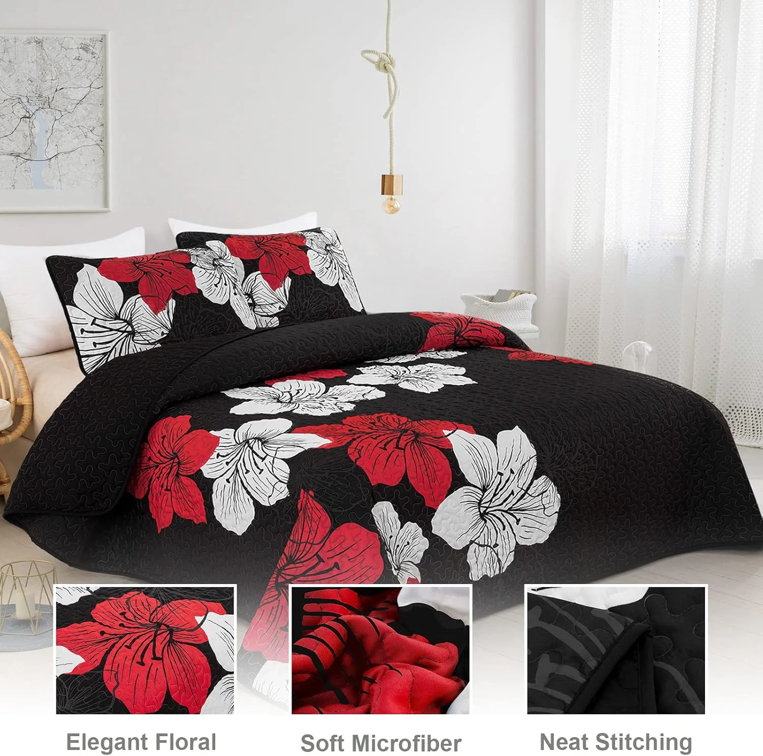 Enhance the comfort and aesthetic of your sleeping space and transform your bedroom into a cozy retreat with our 3-Piece Quilt Bedspread Sets Queen Size Coverlet Lightweight Reversible. This elegant set combines comfort and style, making it the perfect addition to any bedroom decor.