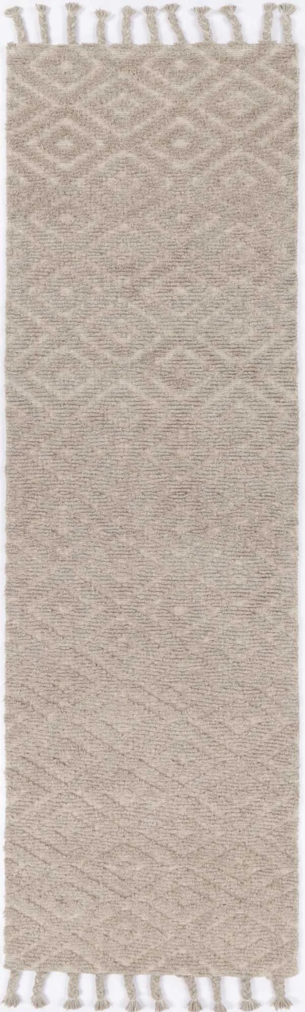 Tribal: Complete any setting with this hand made rug. Soft, lustrous wool yarns are hand-tuftedto create contrasting textures including oversized loops and flat surfaces that are rich in dimension, beautifully styled with classic geometric patterns. Crafted using a 70% wool and 30% Polyester blend, this rug will accent any space with its calm and neutral colour palette making it the perfect choice to add the finishing touch to any room in the house.