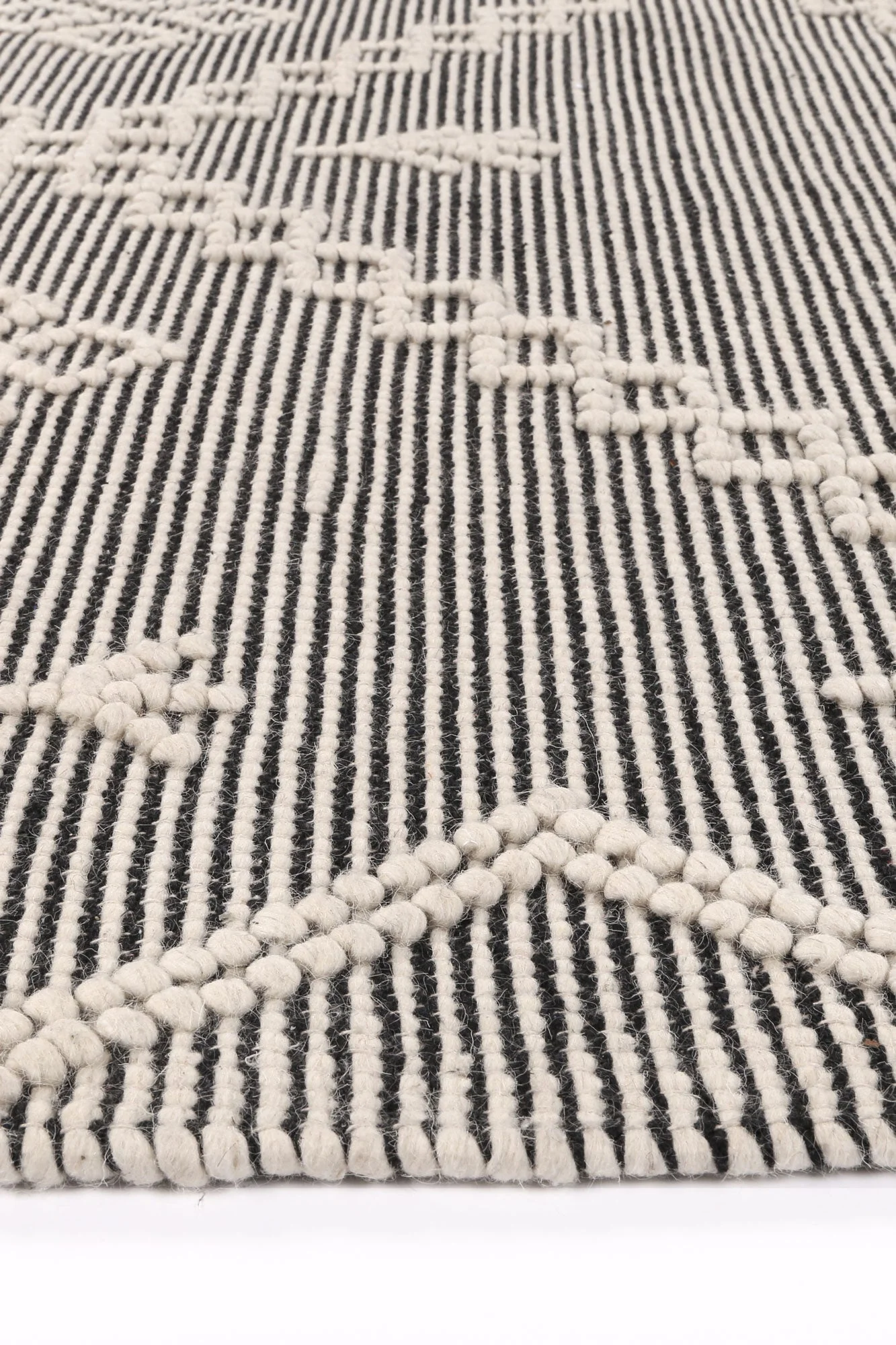 Tribal: Complete any setting with this hand made rug. Soft, lustrous wool yarns are hand-tuftedto create contrasting textures including oversized loops and flat surfaces that are rich in dimension, beautifully styled with classic geometric patterns. Crafted using a 70% wool and 30% Polyester blend, this rug will accent any space with its calm and neutral colour palette making it the perfect choice to add the finishing touch to any room in the house.