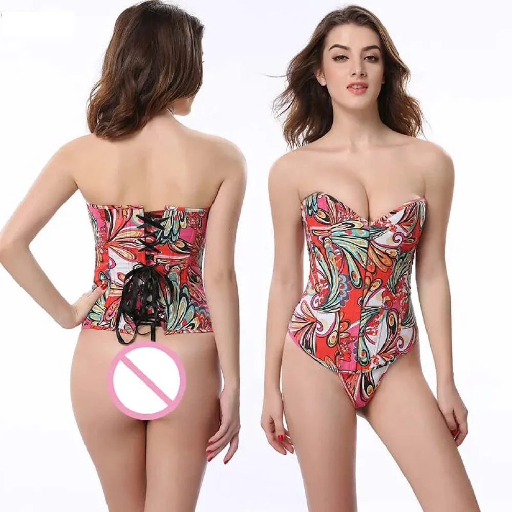 Fish Bone Jacquard Deep V-Neck Corset Crop Top With Halter Neck Plus Size - Xs