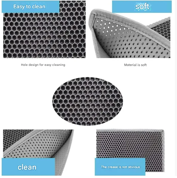Tired of sweeping up cat litter from your floors every day? Our Double-Layer Cat Litter Mat is the perfect solution. Its smart honeycomb design effectively traps litter from your cat's paws as they leave the litter box, keeping your home clean and your floors tidy.