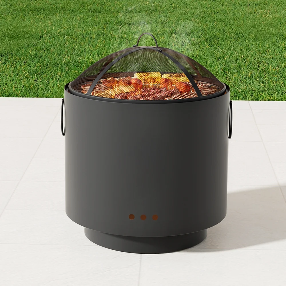 Ideal for camping, patios, or gardens, this durable Grillz fire pit features a deep bowl and 45cm grill for campfires or BBQs. The spark-proof mesh lid and high walls enhance safety, while the high-capacity chamber supports wood/charcoal for long-lasting heat. Foldable handles ensure easy transport, and tool-free assembly allows quick setup. Compact yet robust, it transitions seamlessly from winter marshmallow roasts to summer cookouts—all in one weather-resistant design.