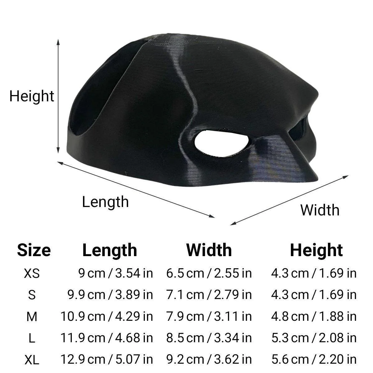 XS: 9 cm x 6.5 cm x 4.3 cm (3.54 in x 2.55 in x 1.69 in)