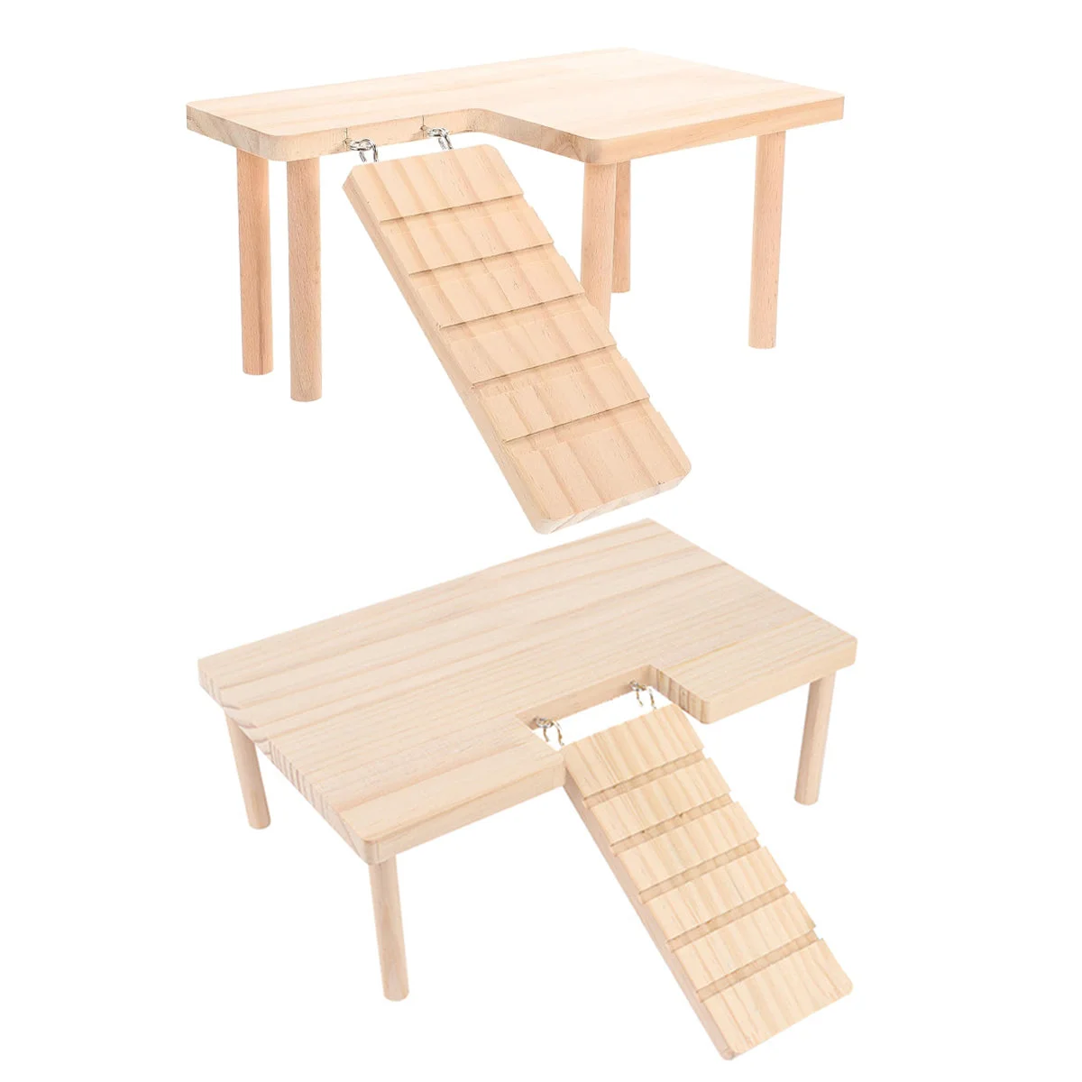 Create a playful and secure habitat with this wooden hamster platform featuring stairs and an elevated second floor. Made from natural pine wood, this pet structure is safe, chew-resistant, and provides enrichment through climbing, exploring, and resting. Designed in both L-shaped (left stair) and U-shaped configurations, it includes a hook-on ramp for convenience and can be easily installed in most cages. Perfect for Syrian hamsters, golden bears, rutin hamsters, and other small pets, this multifunctional playhouse adds an attractive landscape element while supporting physical and mental stimulation.