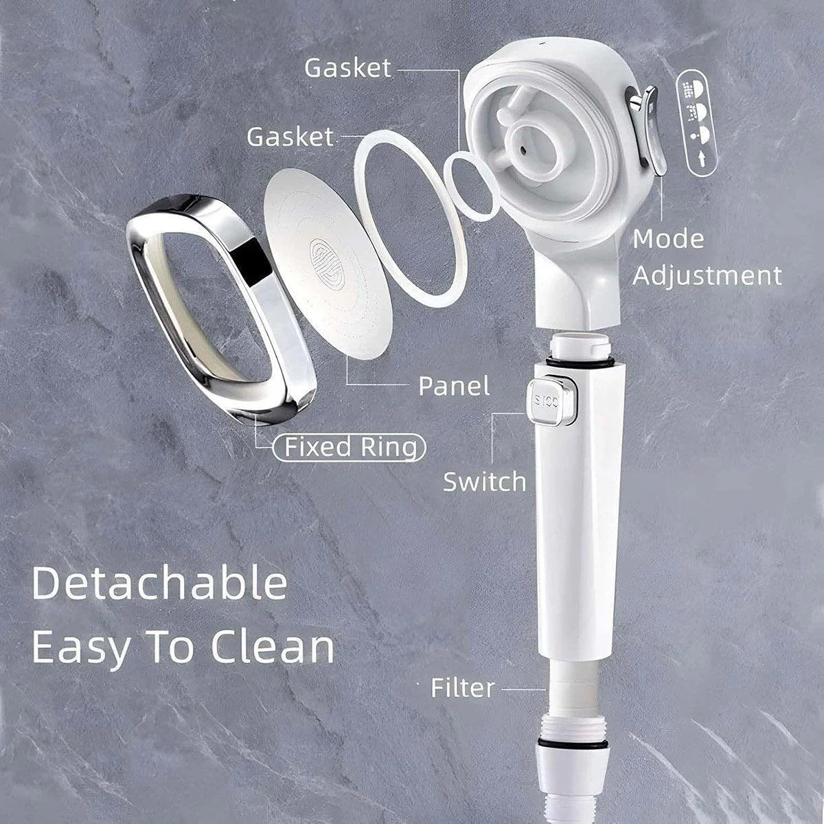 Built-in Water Filter: Comes with a micron-sized filter that purifies water by removing impurities, ensuring a clean and refreshing shower experience.