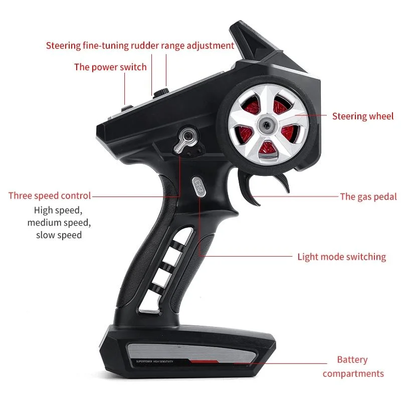 • 2.4G full-scale synchronous remote control system for precise throttle and steering control