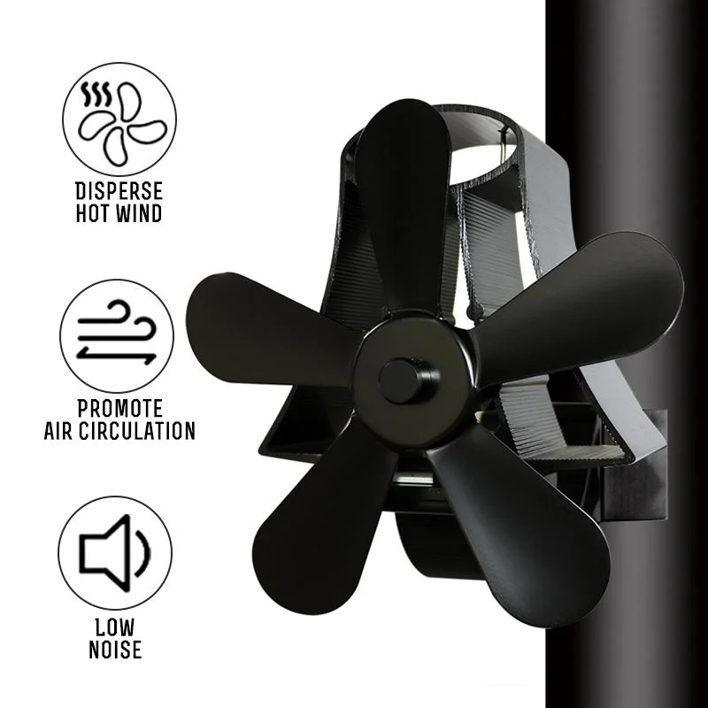 High Temp 5-blade Heat Powered Stove Fan for Fireplaces - Black
