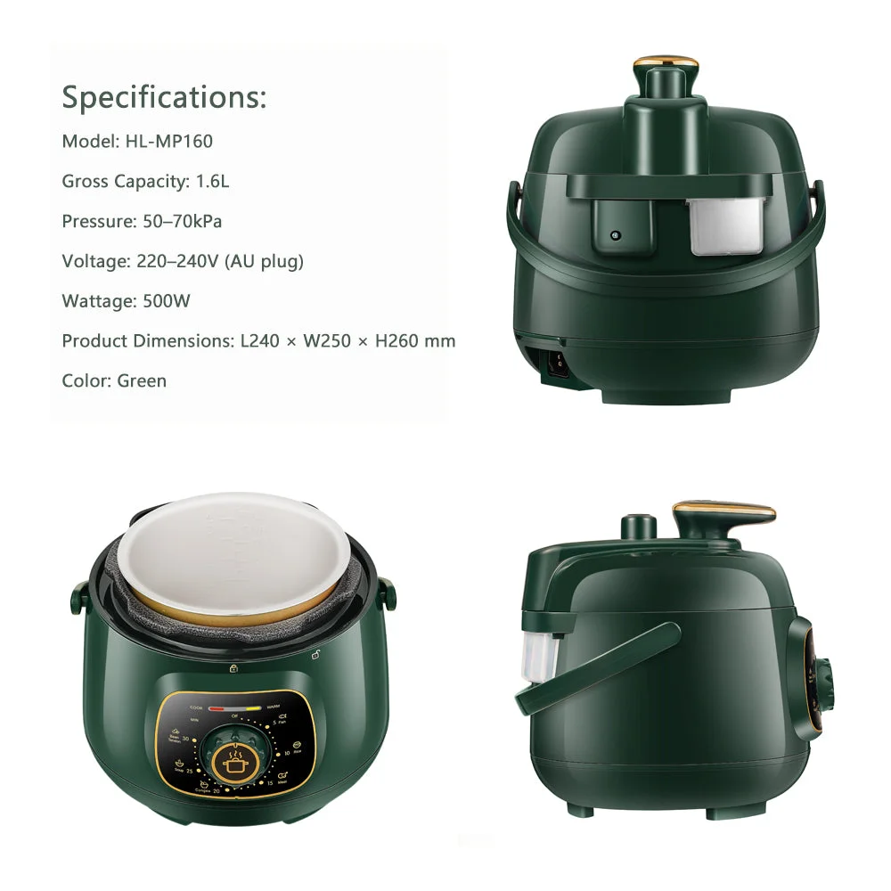 The Hoper Layer HL-MP160 Mini Electric Pressure Cooker is the perfect companion for quick, healthy, and convenient meals for 12 people.