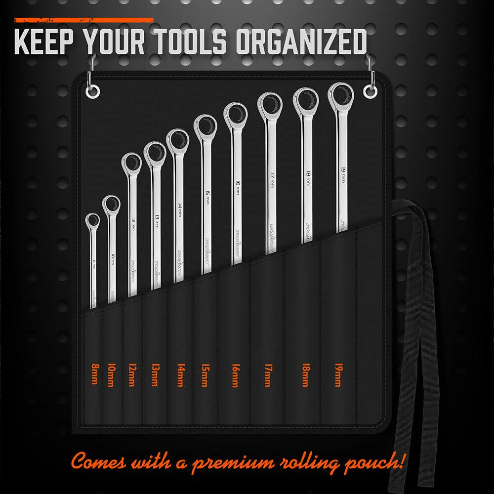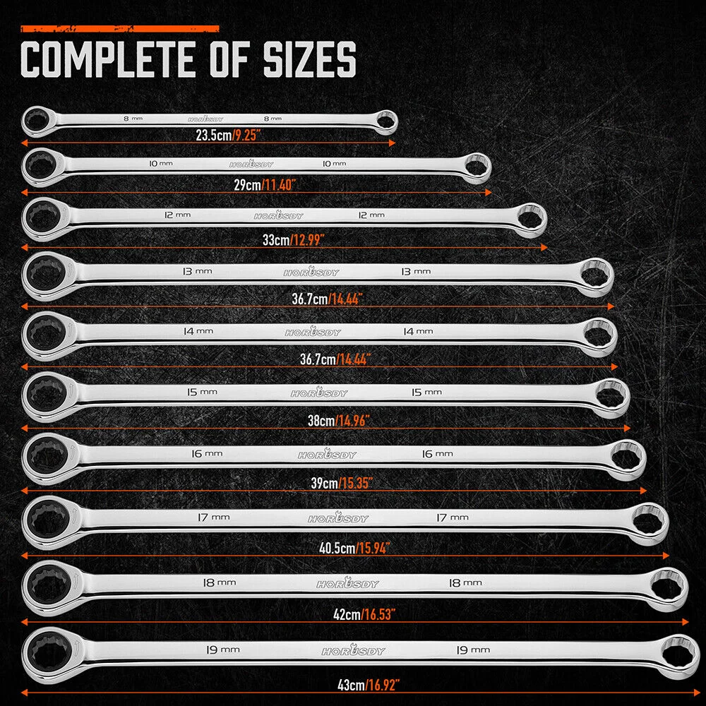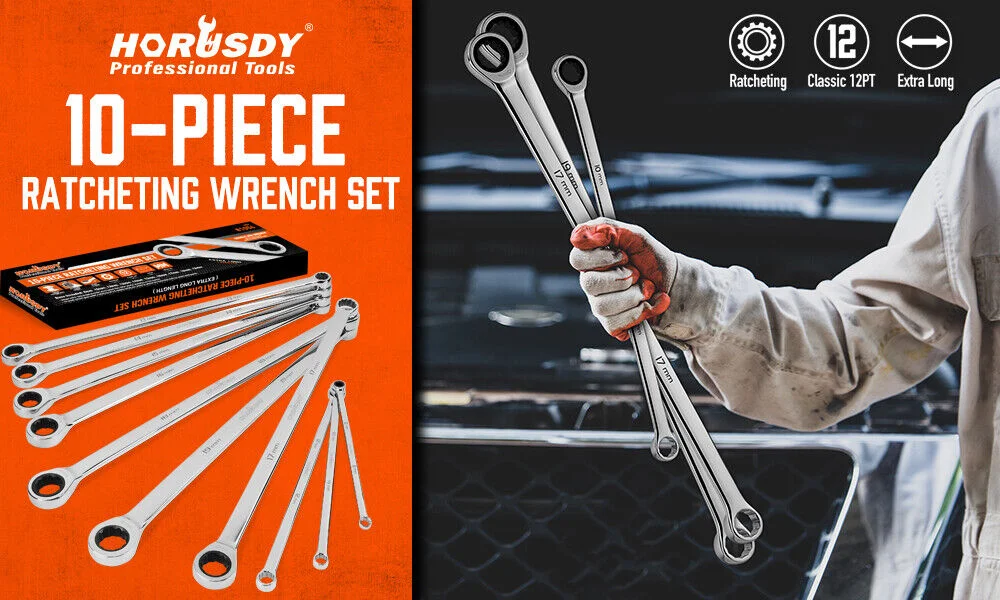 10pc extra long ratchet ring spanner
