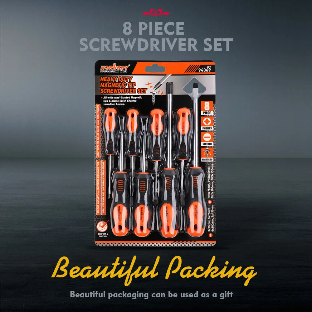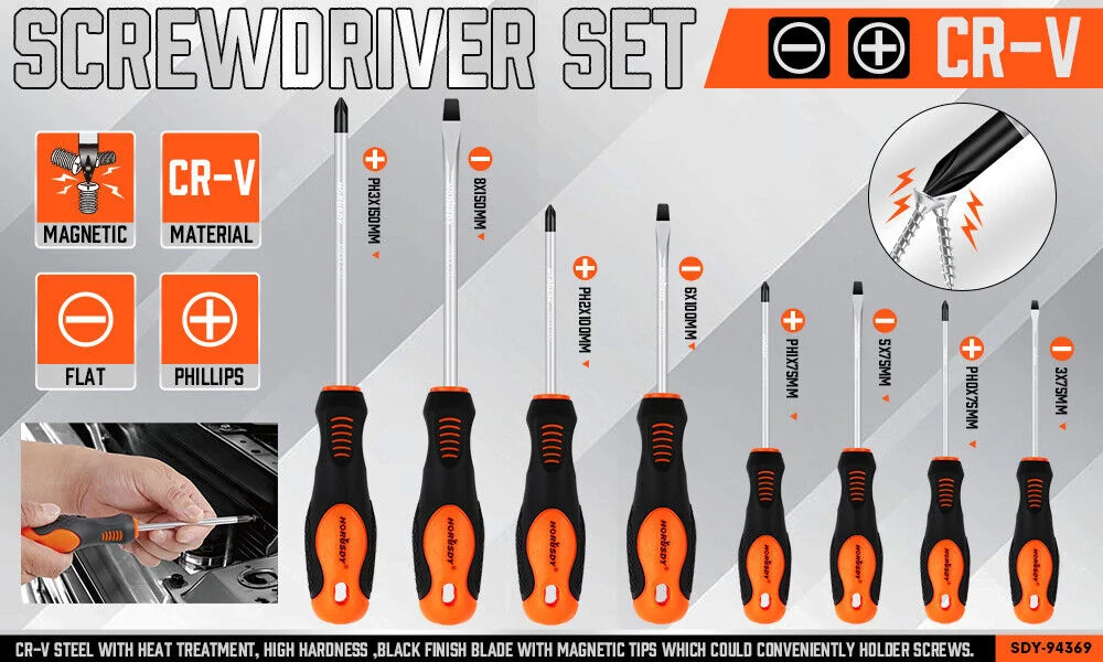 HORUSDY 8Pc Magnetic Screwdriver Set Non-slip Handle Phillips Slotted Tool New