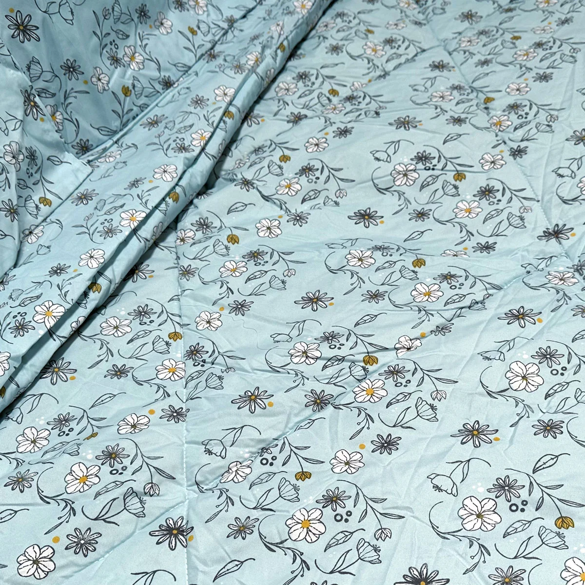 The 3 Pce Light Weight Microfiber Comforter Set Corbett Gardens Queen/King by Hotel Living is a bedding set that will brighten up your bedroom with its floral patterns. Light-weight. Microfiber face fabric with peach skin feel. Approx 200gsm -220 gsm polyester filling. The pillowcase patterns are randomly cut from the matching comforter face fabric. Comforters are quilted, Should there be any minor imperfect prints. An option flip it over as other side has the same prints, is fully reversible!