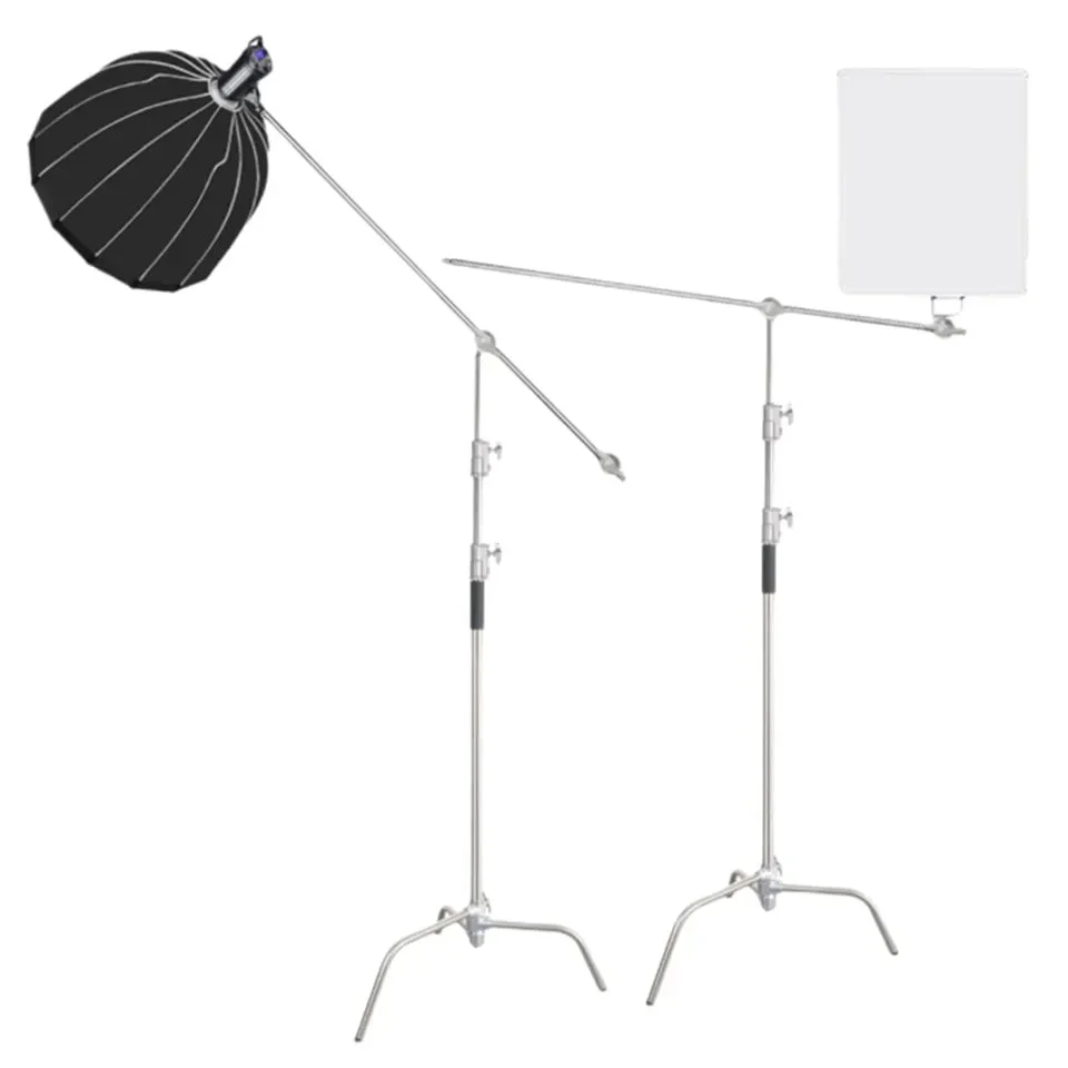 The HRIDZ 10.8ft/330cm Heavy Duty Studio C Stand Century Stand Boom Arm Grip Heads Kit is an essential tool for photographers and videographers. It's designed for mounting various equipment such as strobe lights, reflectors, umbrellas, softboxes, and more. With its solid locking capabilities, it ensures the safety and stability of your lighting setup during use.