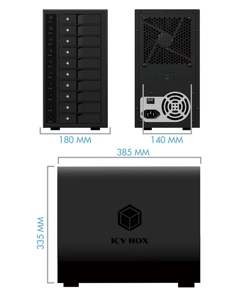 Watch out - the series will continue! You know the 3-, 4-, 5-, 6-, 8- and 10-bay enclosures from ICY BOX? Now we are finally continuing the series and also offer the latest USB Type-C® 3.1 (Gen 2) technology with up to 10 Gbit/s data transfer rate for the 10-bay enclosure! All the advantages of the previous enclosures are of course also integrated in the IB-3810-C31, such as a lock on each hard drive slot or the individual switching on and off of a hard drive without USB connection interruption. A sequel could not be more exciting and up-to-date!
