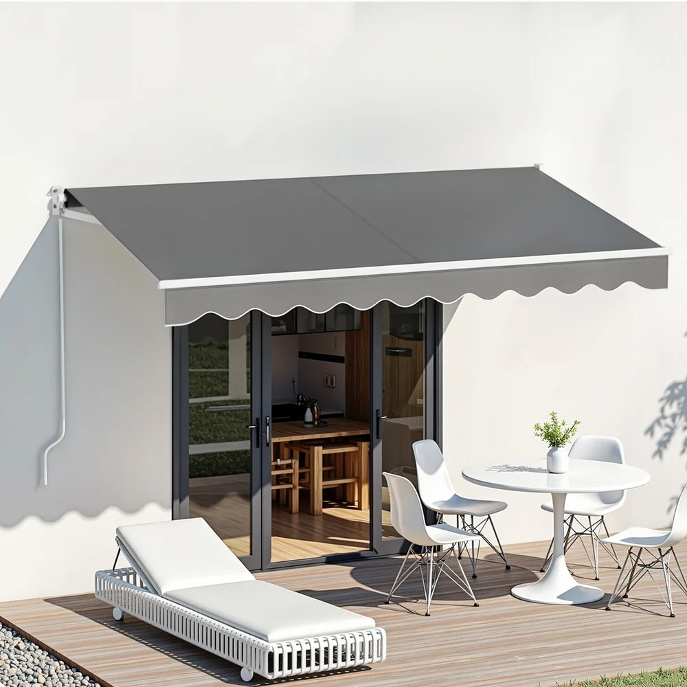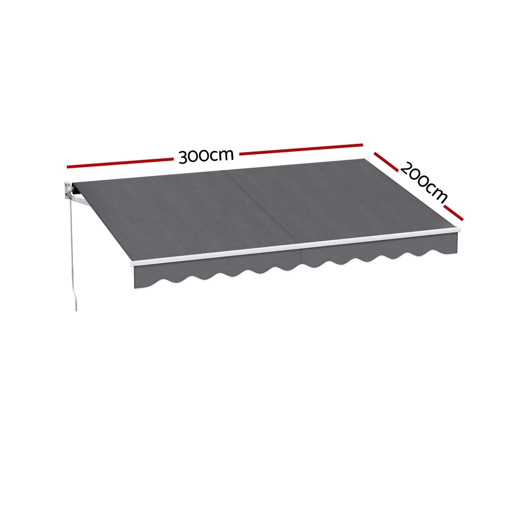 Instahut Retractable Folding Arm Awning Manual Sunshade 3M X 2M Grey