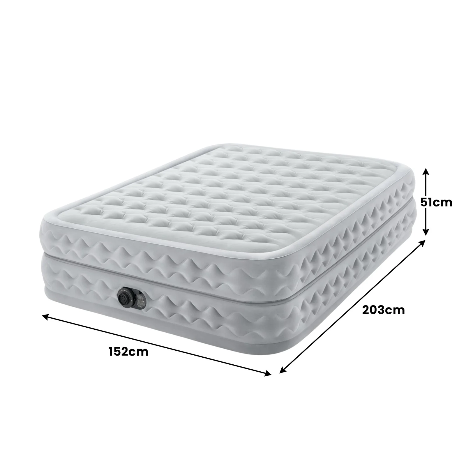 Indulge in great comfort atop the Dura-Beam Supreme Air-Flow Air Mattress. Engineered with cutting-edge Advanced Fiber-Tech technology, this air mattress boasts a network of inter-connected air pockets ensuring a smooth airflow across the sleeping surface. Revel in the velvety soft comfort top surface, complemented by double-layered construction for effortless sheet tucking. Experience a luxurious nights sleep with this next-level air mattress.