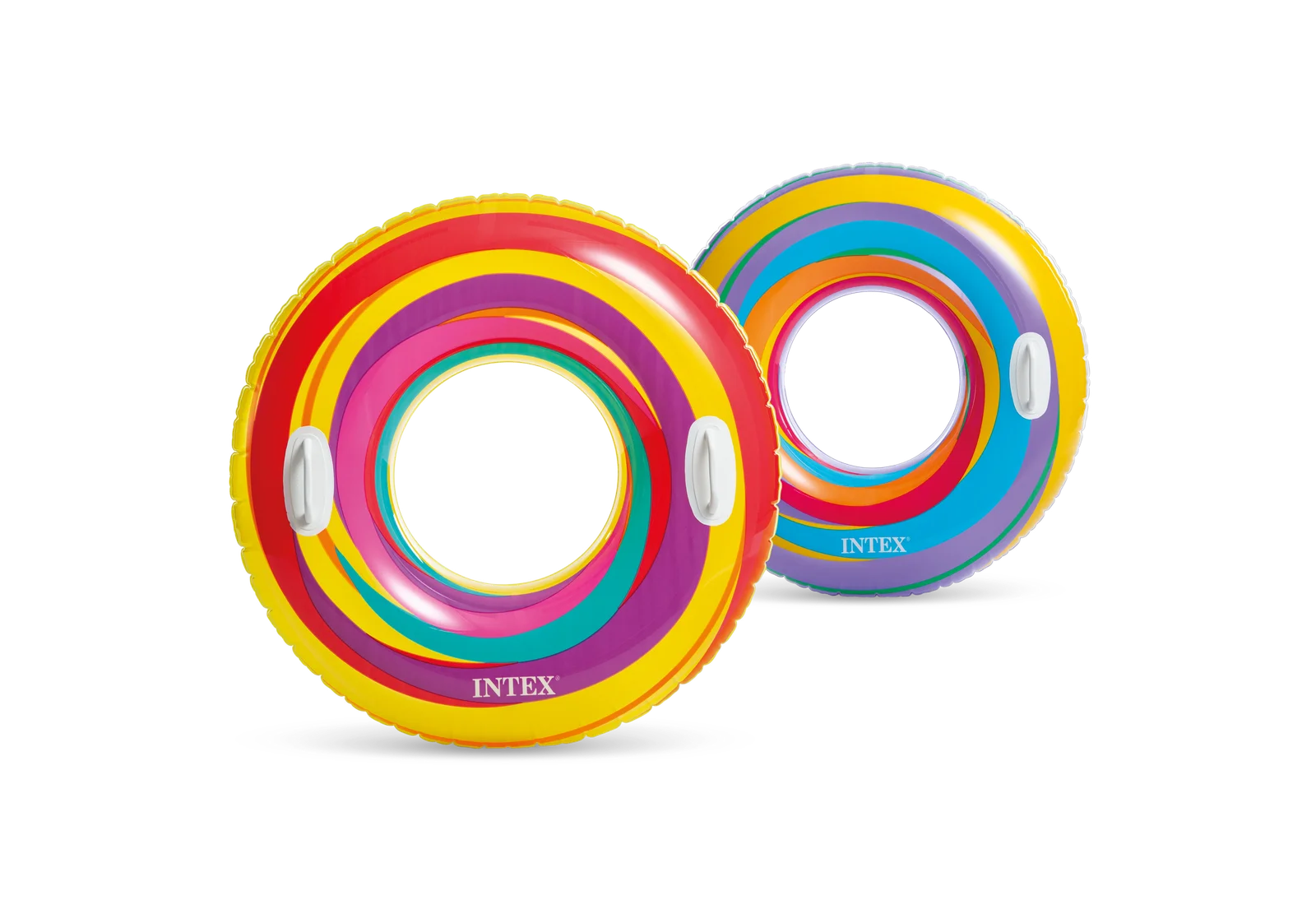 Perfect for a fun day in the water.Colours Randomly SelectedHave fun floating around on the stylish Swirly Whirly, with 2 different colours; Yellow and Purple36" (91cm) diameter8ga (0.20mm) vinylYellow and Puplecolours2 heavy-duty handles88 lb (60 kg) max weight limitAge 8+�