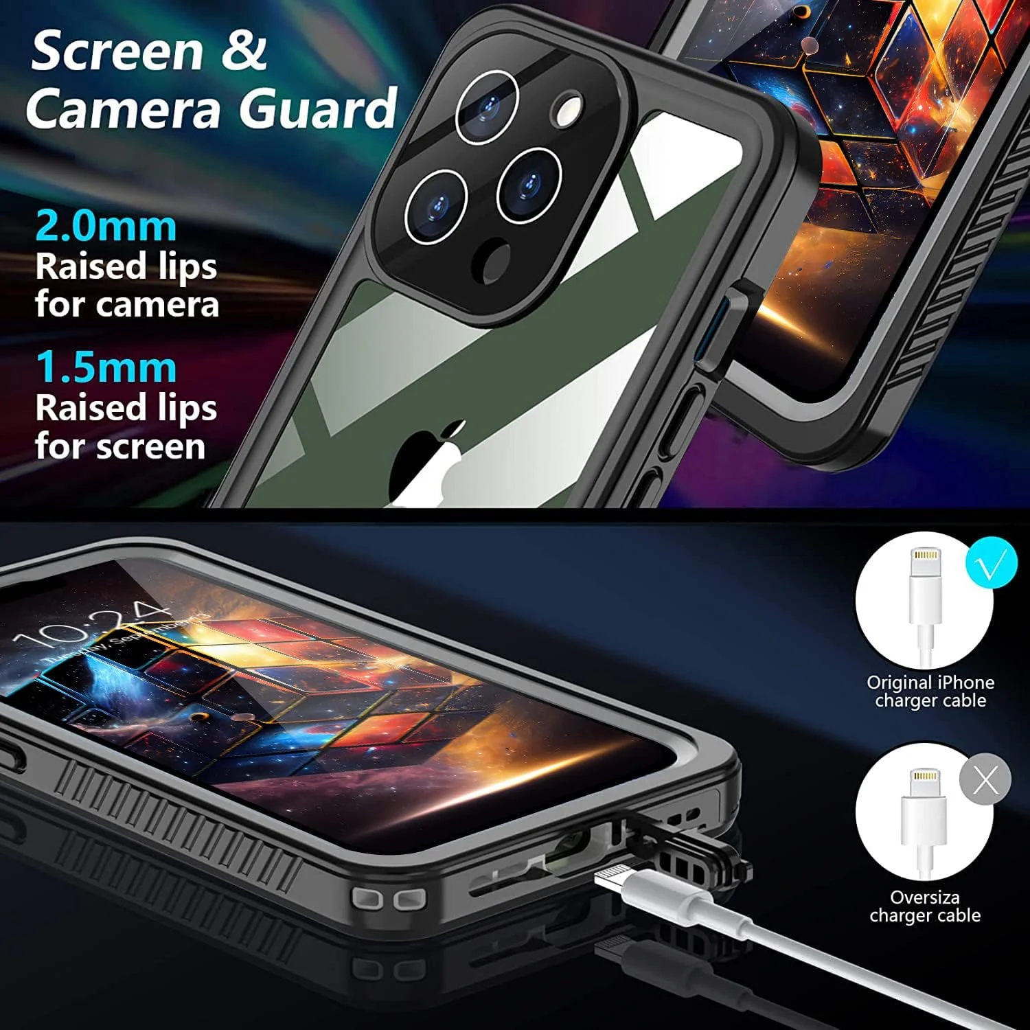 WATERPROOF: The iPhone 13 Pro Case is Waterproof of a depth of up to 2 meters for more than 3 hours, take photos, send a message, etc when you are enjoying your water activities on the go.