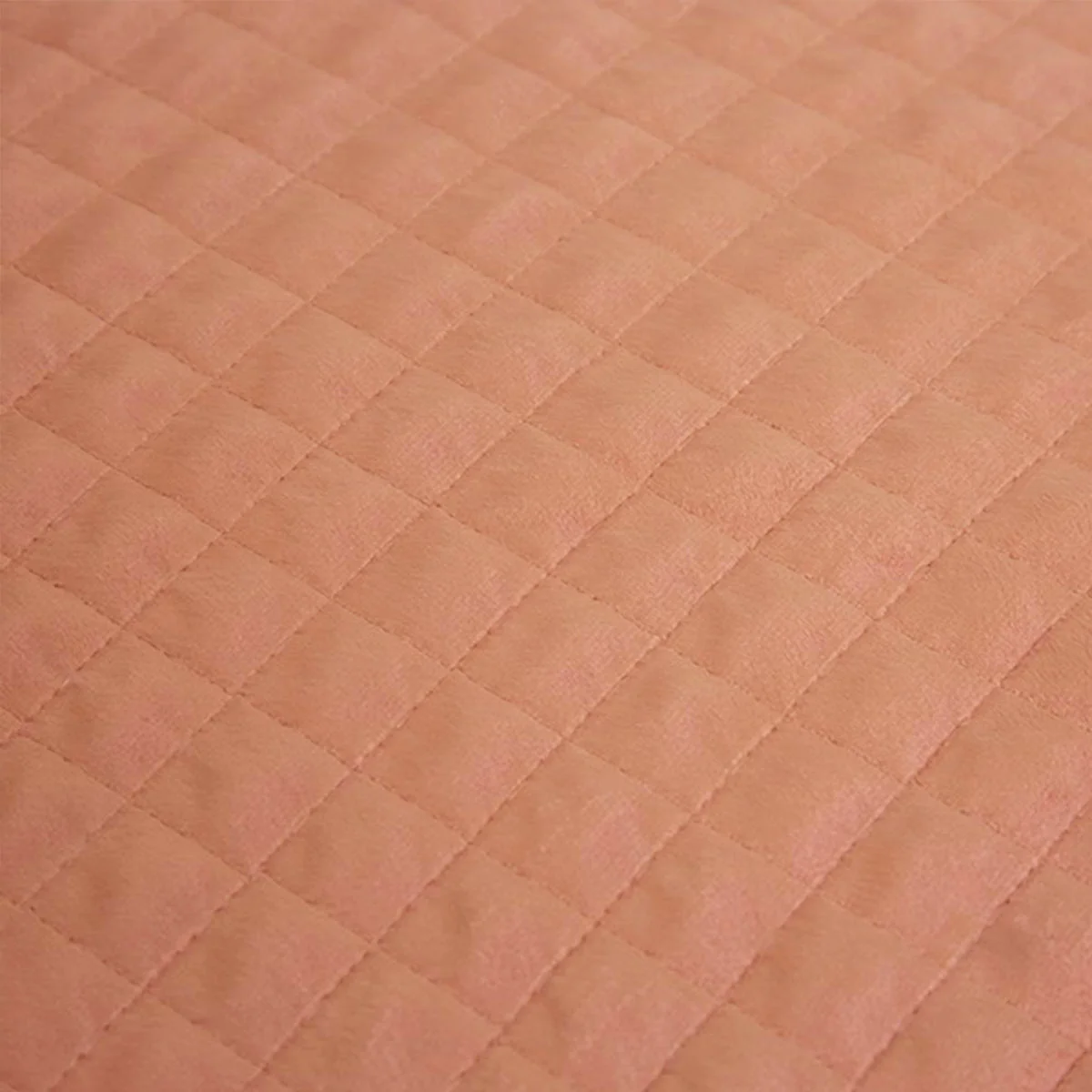 The Adela Clay Pink Velvet Quilted Coverlet Set Queen/King by J Elliot Home features a quilted geometric diamond design in soft neutral hue. It will instantly add elegance to the bedroom and uplift your existing design elements. It is made from quality and soft touch Polyester fabric and Polyester Cotton filling for a cosy night's sleep.