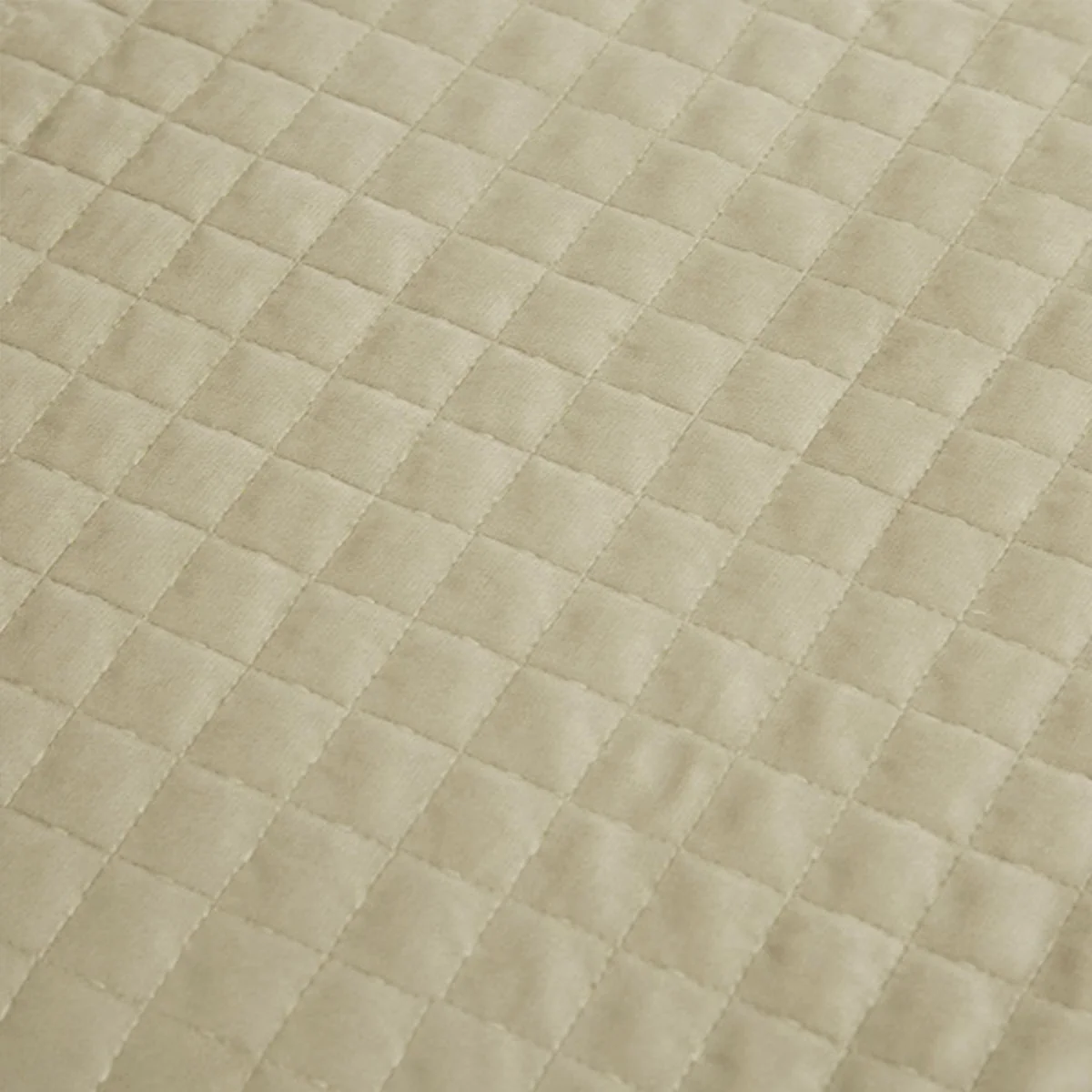 The Adela Sandstone Velvet Quilted Coverlet Set Queen/King by J Elliot Home features a quilted geometric diamond design in soft neutral colour tone. It will instantly add elegance to the bedroom and uplift your existing design elements. It is made from quality and soft touch Polyester fabric and Polyester Cotton filling for a cosy night's sleep.