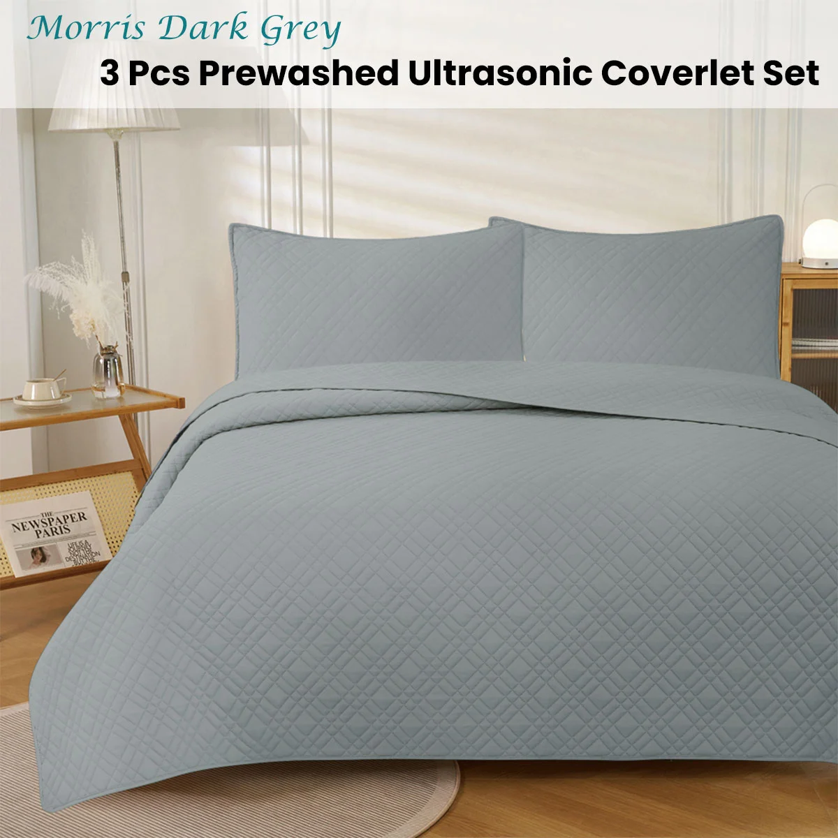 Upgrade your sleep haven with the Morris Dark Grey Ultrasonic Embossed Lightly Quilted Reversible Coverlet Set by Jane Barrington. This set features ultrasonic embossed design that not only adds a contemporary touch to your bedroom but also offers a tactile delight. The rich dark grey hue serves as a versatile backdrop, complementing any decor style while providing a statement of sophistication. Made from microfiber fabric and microfiber filling, this coverlet is cozy, perfect for any season. Whether it's the main attraction or a subtle addition, this coverlet set is sure to enhance the look and feel of your sleeping space.