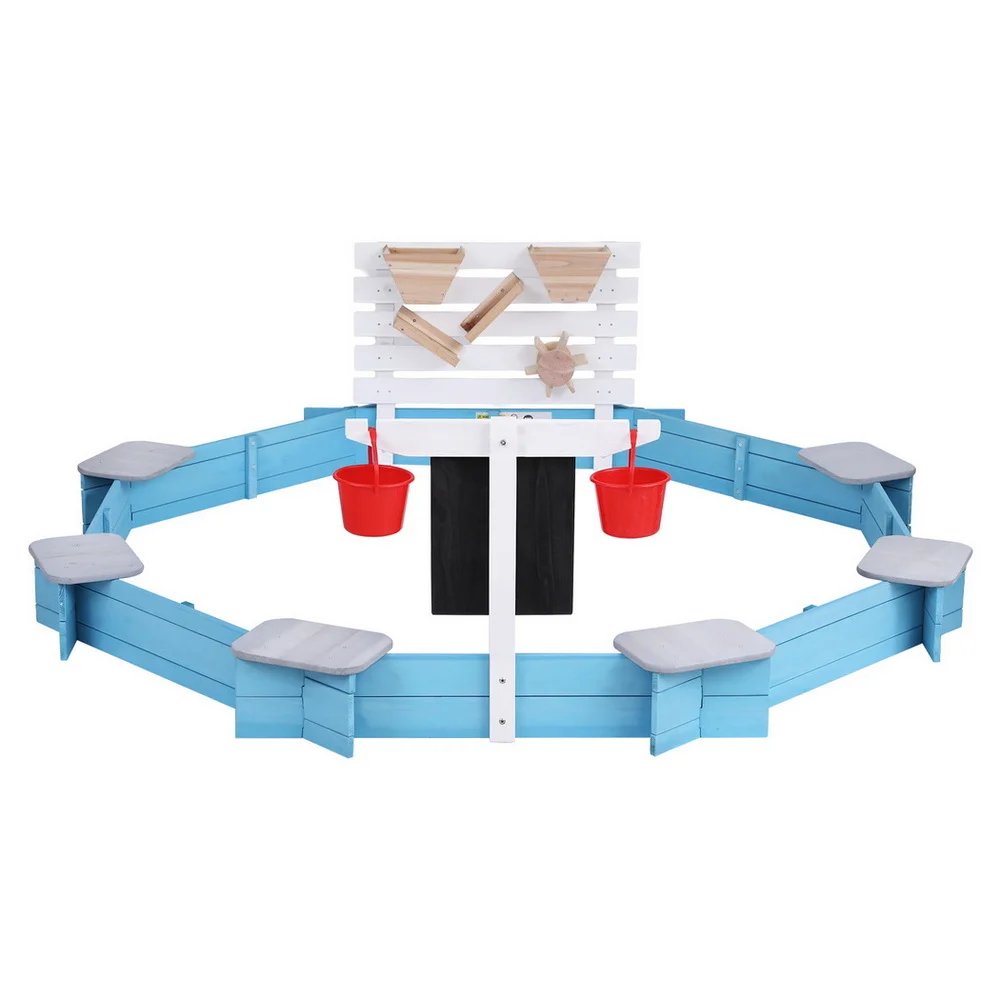 Create the ultimate backyard play zone with the Keezi Kid Sandpit, designed to spark imagination and active fun. Built from strong, treated timber for long-lasting use, this spacious sandpit can comfortably host up to six children. It comes complete with a sand funnel, spiral, two buckets, and a drawing board to encourage creative and interactive play. The comfortable seating area allows kids to rest between activities, while the treated timber offers protection against wood rot and insect damage. Certified to EN71 Toy Safety standards, the Keezi Kid Sandpit is the perfect way to combine outdoor exercise with hours of entertainment.