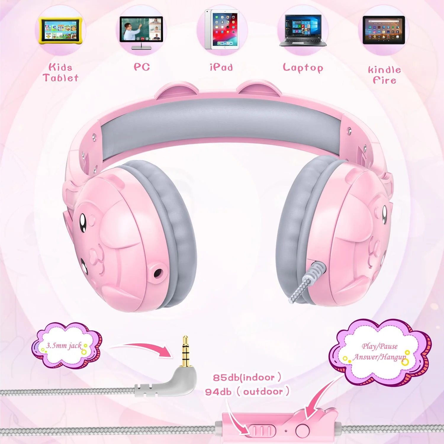 Foldable Led Headset With Mic Usb + 3.5Mm Port - Dark Blue