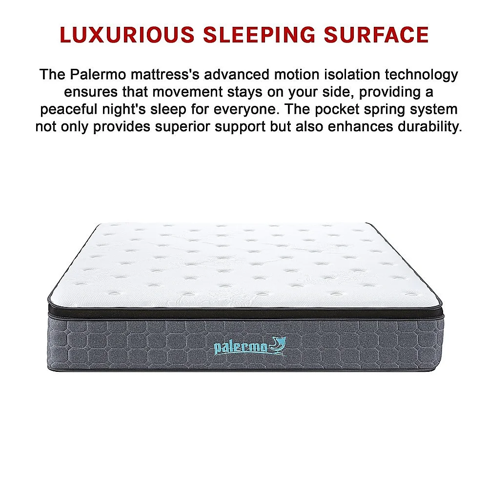 Elevate your sleep experience with the Palermo Euro Top Pocket Spring Mattress. Designed for ultimate comfort and support, this 33cm thick mattress combines innovative technology with premium materials to ensure you wake up refreshed and ready to take on the day.