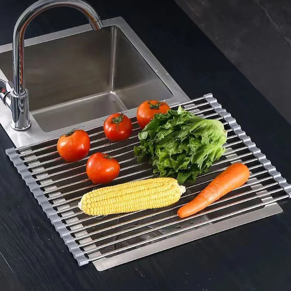 Multi-function Dish Drainers for Kitchen Counter: This dish drainer rack is well made and rolls up and goes in a drawer quickly when not in use. Unrolls above an open sink for air-drying washed dishes,counter top space,as a trivet or sink caddy.Veggies and fruit drying rack drainers,great tool for kitchen sink accessories