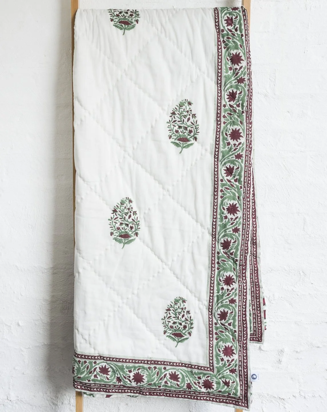 All our quilts are designed in Melbourne and individually hand block printed by skilled artisans. Our quilts are hand made using superior quality pure cotton fabric.