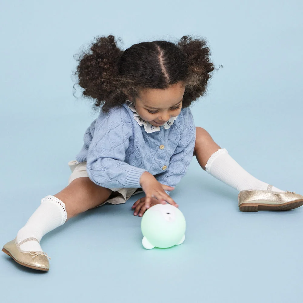 Kreafunk Kids Blob Lamp - White / Moon Grey - Blob The Soft Glow Companion.Meet Blob a delightfully soft LED lamp designed to bring warmth, comfort, and a touch of magic to your space. Made from the softest materials imaginable, Blob is perfect for nurseries, bedside tables, or anywhere you need a gentle glow.Whether you're nursing at night or setting a calming mood, Blob emits a soothing ambient light that creates the perfect atmosphere. With a simple tap on its head, Blob cycles through 7 enchanting colours, letting you tailor the mood to your liking. Need a change? Just tap again to explore a new hue. Crafted from 50% sand-based silicone and 100% recycled GRS-certified plastic, Blob is not only irresistibly soft but also world-conscious and PFAS-free. Thanks to its clever design, it stays cool to the touch safe for curious little hands and sleepy snuggles.