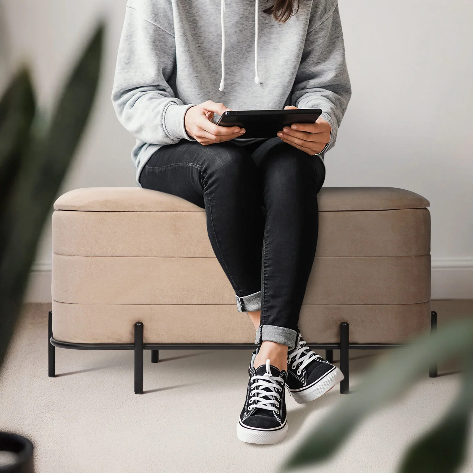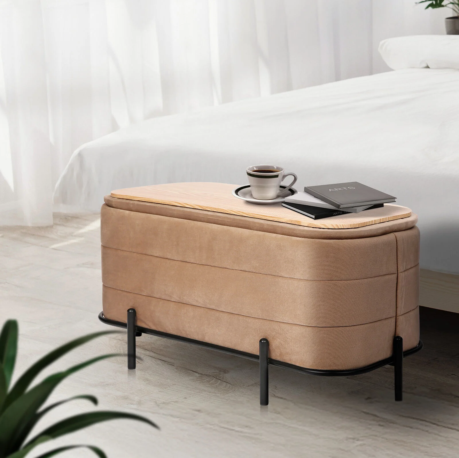 La Bella Coffee Table Storage Ottoman - Velvet Blanket Box Bench DEMI - Camel Beige